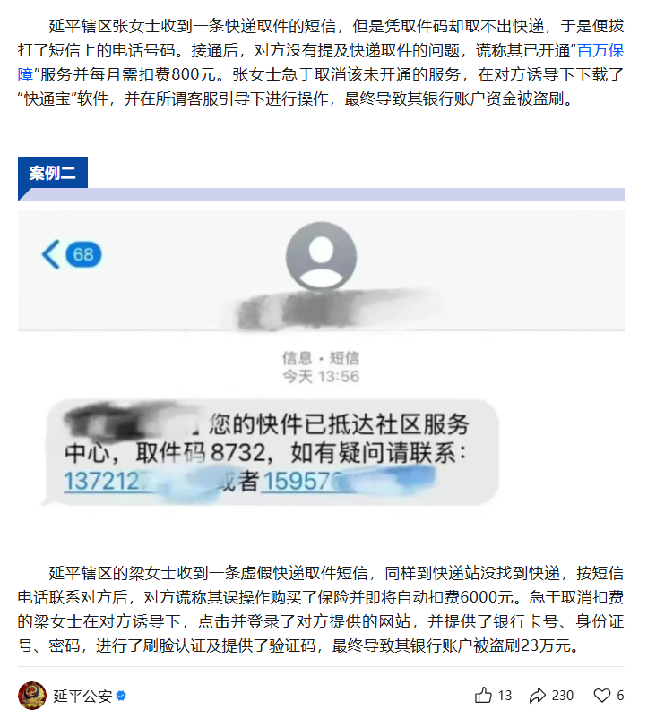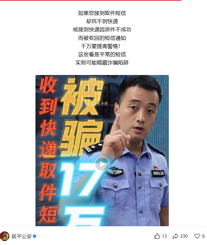 【反诈预警】警惕电诈新变种🍈🛫!有人收到快递取件短信被骗数十万元