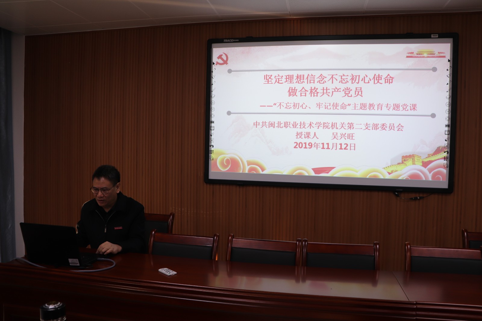 2019年11月12日下午,学院机关党总支召开全体党员大会,第一、第二支部书记为支部党员作“不忘初心、牢记使命” 主题教育党课辅导。