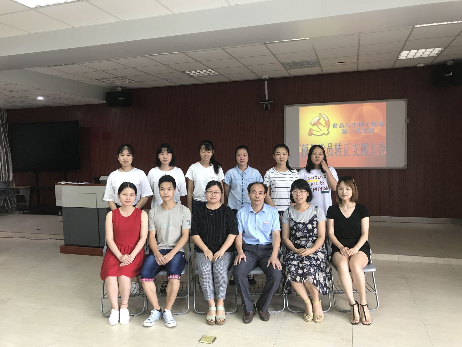 食品与生物工程系第二党支部于2017年6月27日上午在教学做一体化实训室召开预备党员转正支部大会。参加此次会议的有食品与生物工程系第二党支部正式党员和预备党员,会议由食品与生物工程系支部书记黄妍主持,讨论对江白翠、叶秋茂两名中共预备党员的转正问题。
