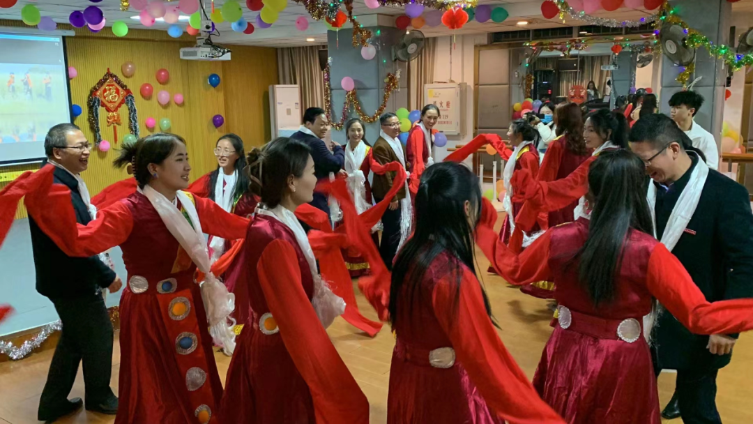 活动现场,师生们发挥文艺特长,表演了精彩的节目。藏族同学们手捧青稞酒,情不自禁地跳起了传统的锅庄舞,唱起了民族歌曲,老师们也伴随音乐一同起舞👨🏽🍳,将活动气氛推向高潮。