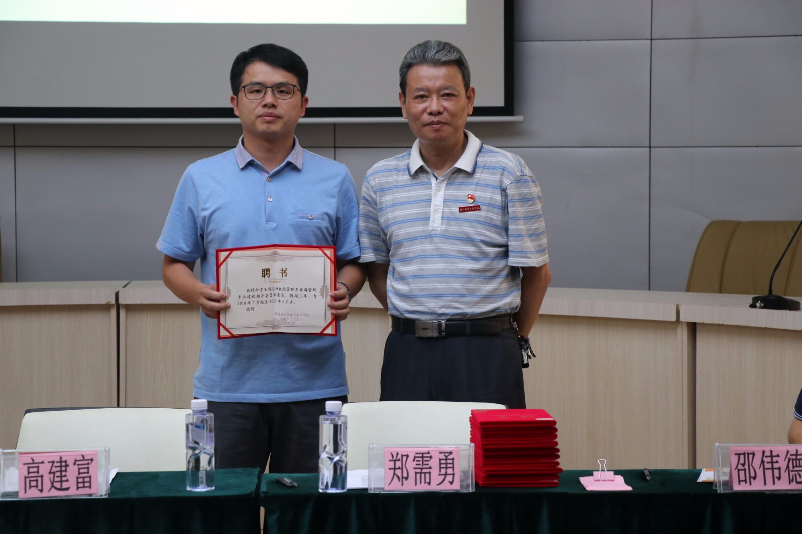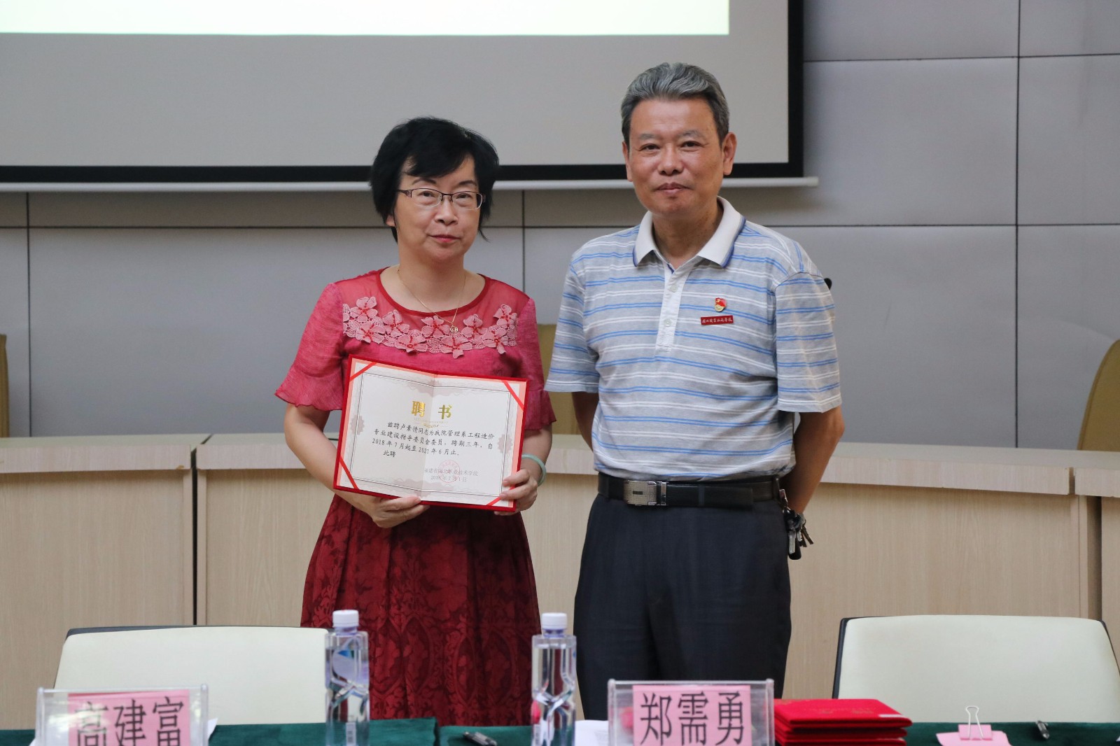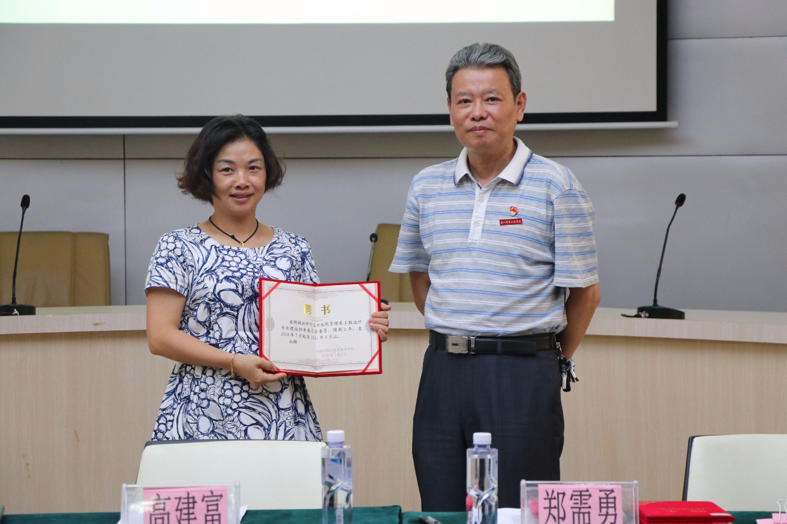 高建富书记为企业专家授予专业建设指导委员会委员聘书并合影