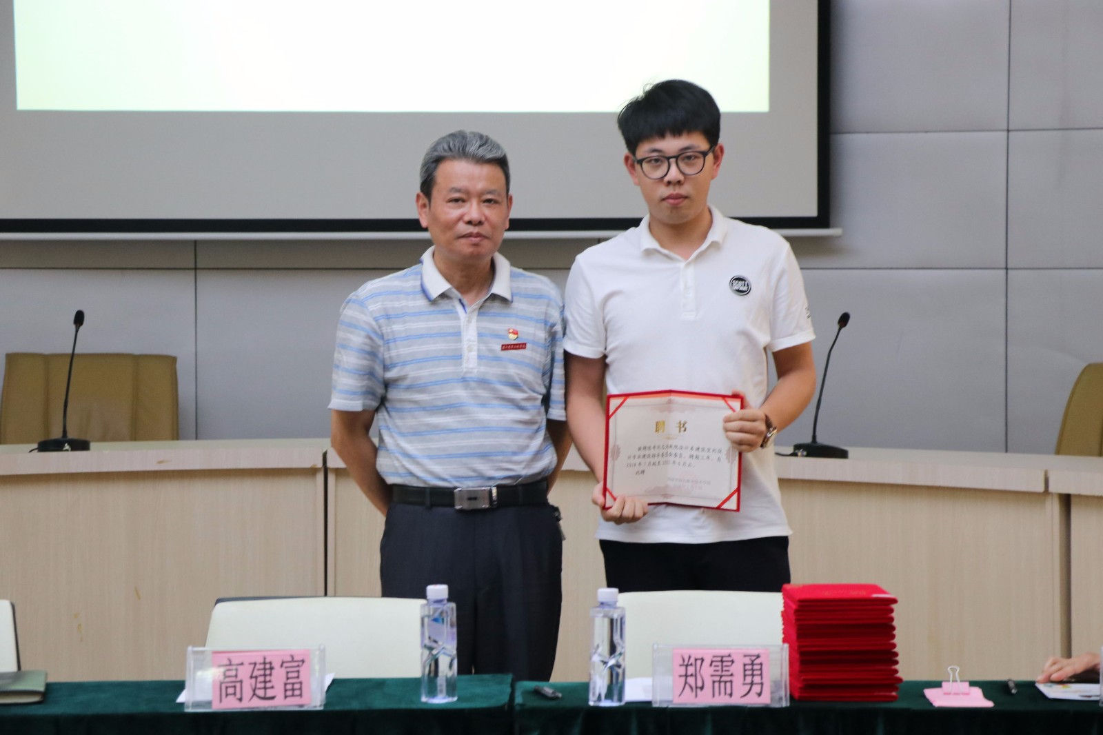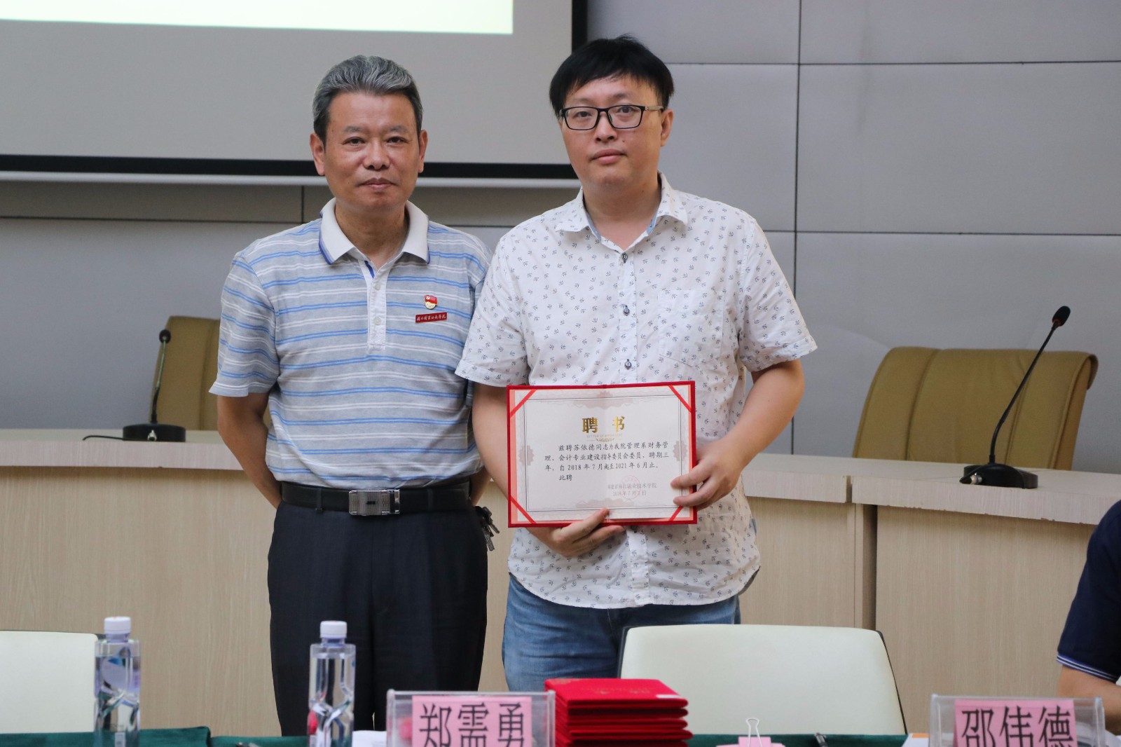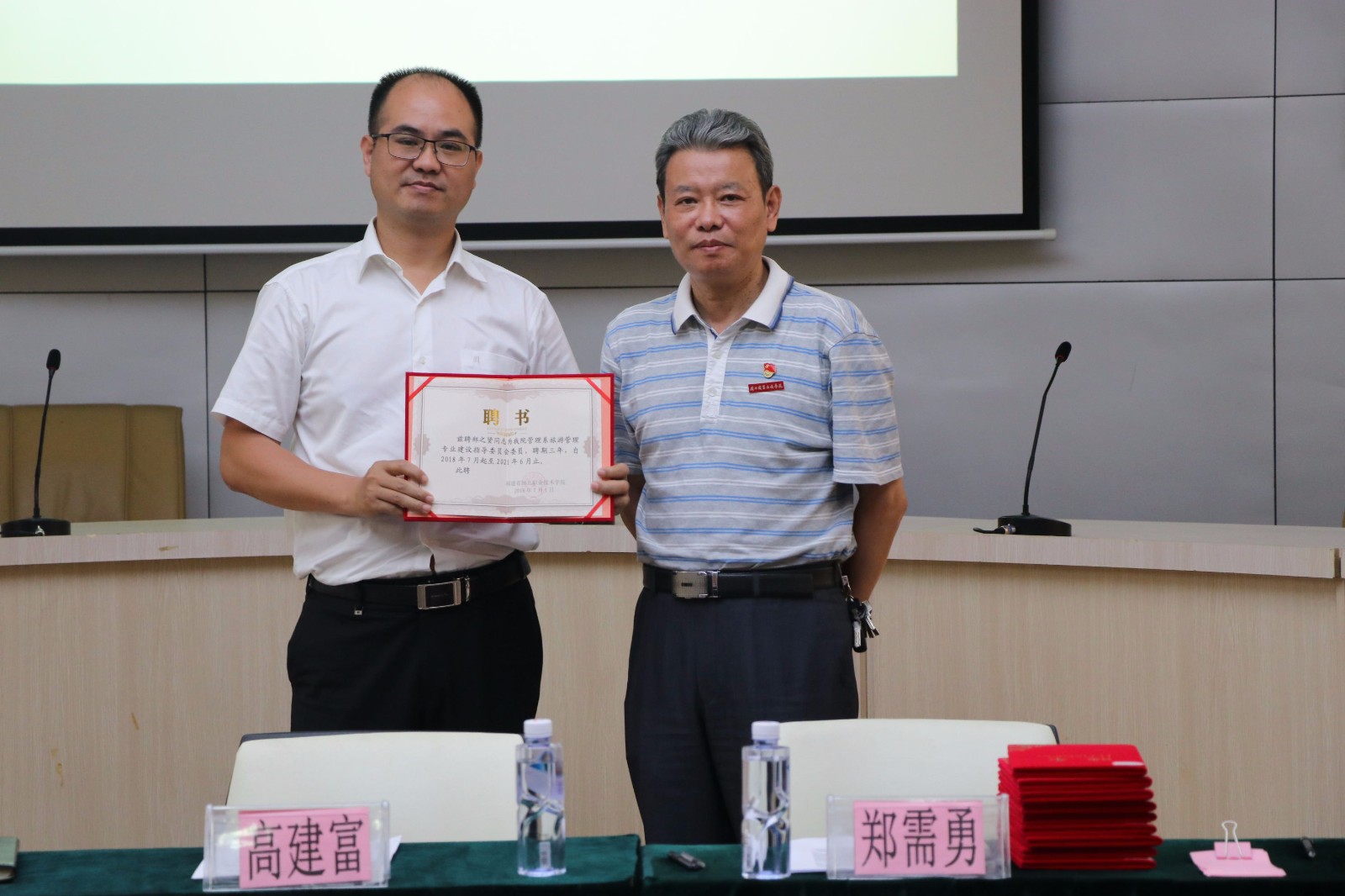 高建富书记为企业专家授予专业建设指导委员会委员聘书并合影
