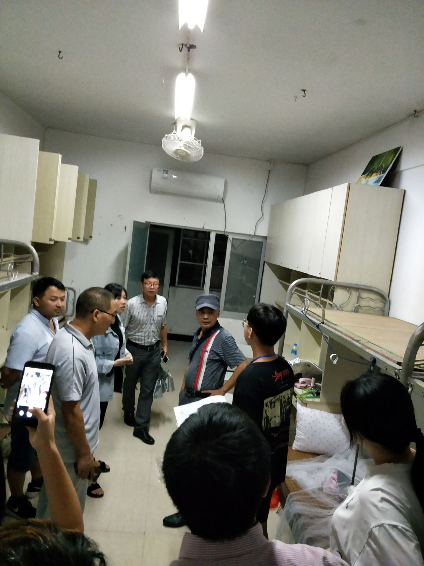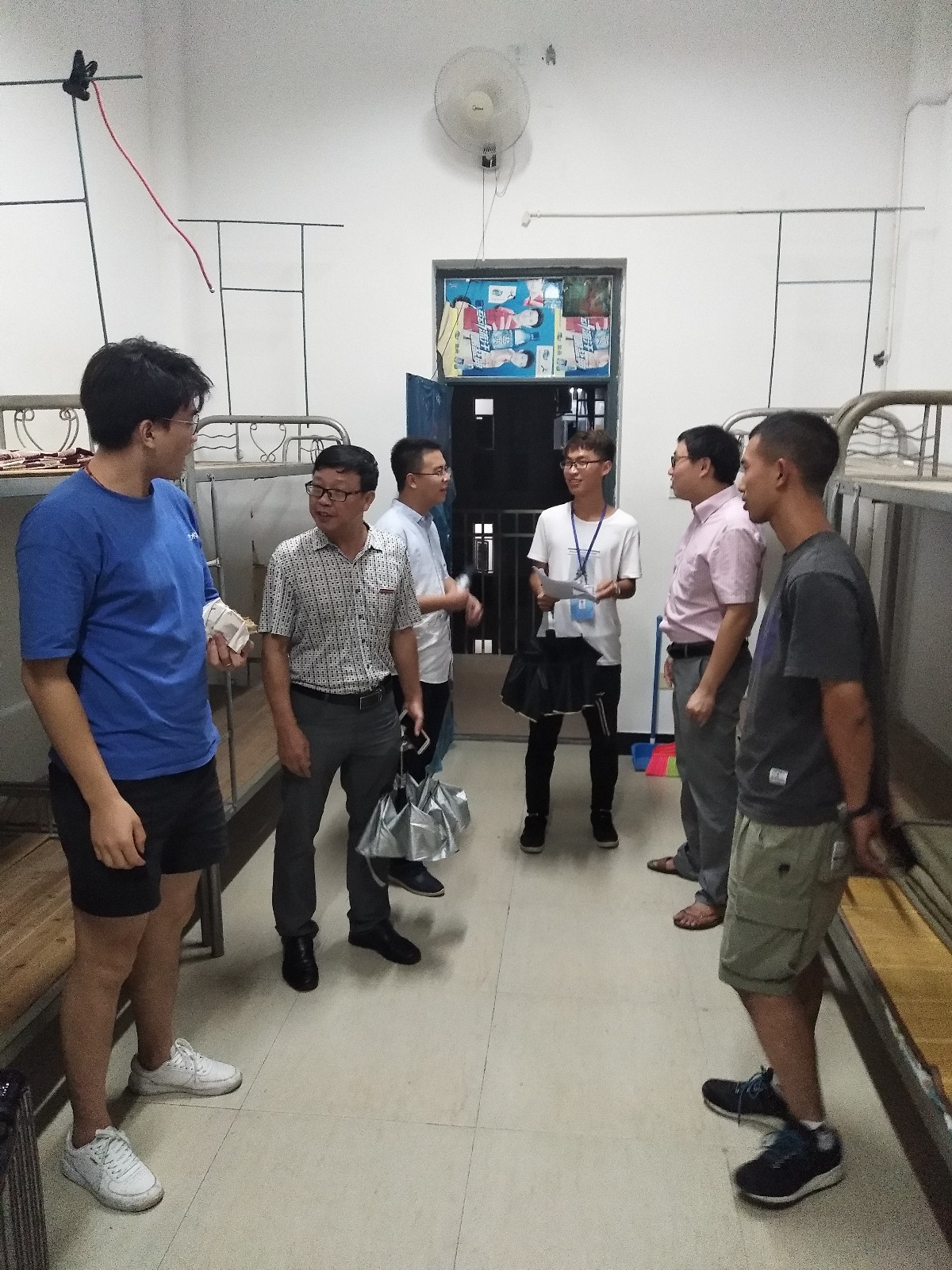 9月8日晚🕵🏼,设计系和管理系党总支书记詹茂光👺,系主任🕢、党总支副书记郑需勇,党总支常务副书记敖润富,学生科科长吴亮以及全体辅导员一行深入学生公寓看望2018级新生⬛️。