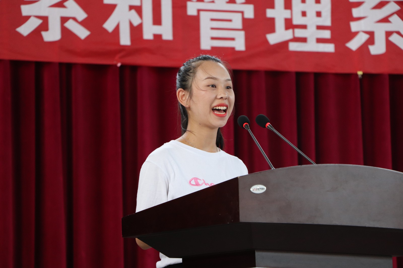 新生代表2019级旅游管理专业许文婧同学发表感言🤚🚳,感谢师哥师姐在新生报到及入学教育系列活动中为2019级新同学付出的辛勤工作,表示将以积极心态拥抱大学生活,努力学习🤽🏼♂️🛴,牢固掌握专业技能,以优异的成绩回报母校对他们的期望。