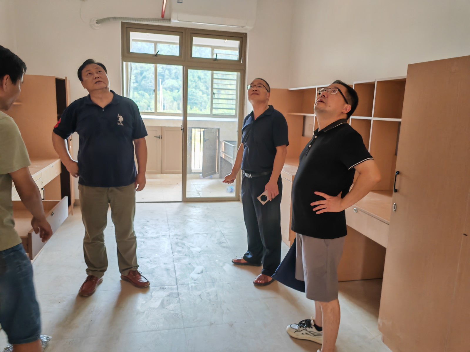 谢友平书记一行首先查看了29#30#学生宿舍楼室外工程建设情况(运动场所👨🏻✈️、绿化情况♎️、电力配套🐱、垃圾转运等)以及“五同公园”施工进度情况,之后深入到29#30#楼的学生宿舍中⬛️,对学生用床、学习桌椅、生活衣橱、空调设备、洗浴设施等配备情况进行视察🙇🏻,并对29#30#学生宿舍楼存在的问题现场指导。