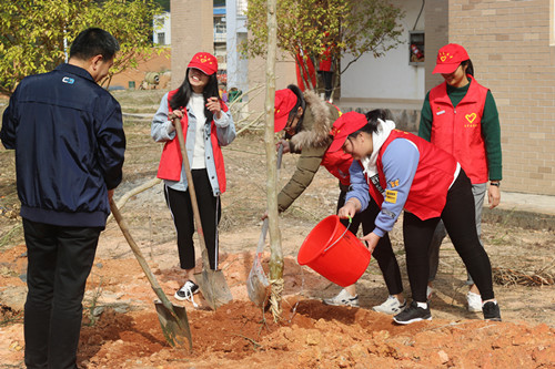 在植树节的当天早上,来自我市市直、区直机关的党员领导、干部职工们一行百余人来到我校,与学院领导、青年志愿者同学们进行义务植树活动,齐心协力植下了一批珍贵树种。
