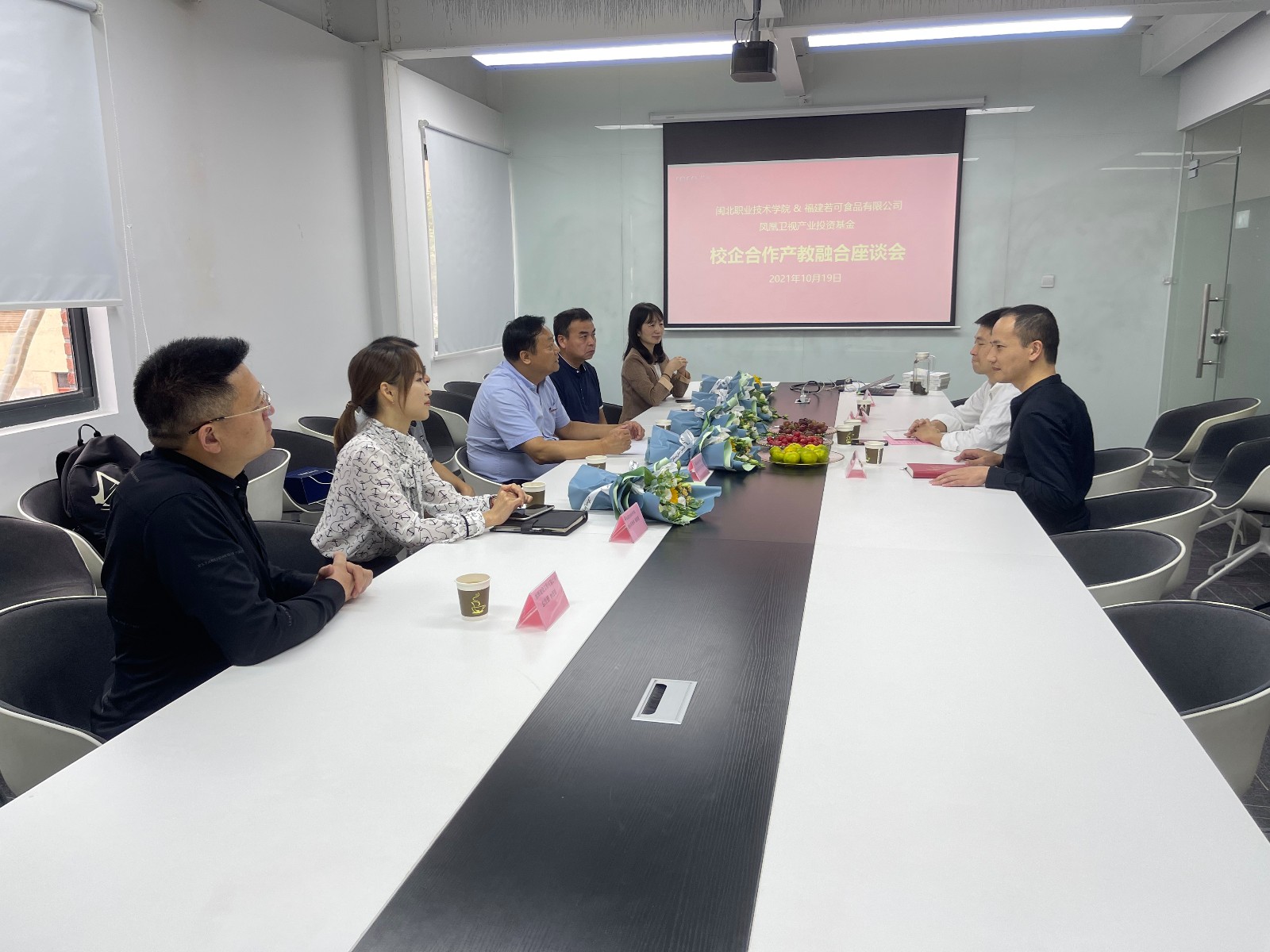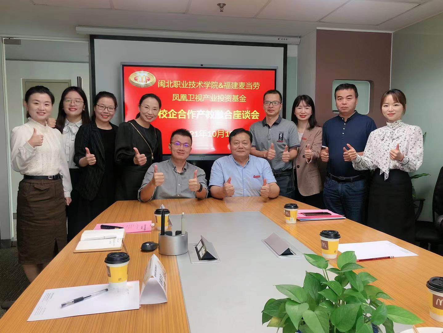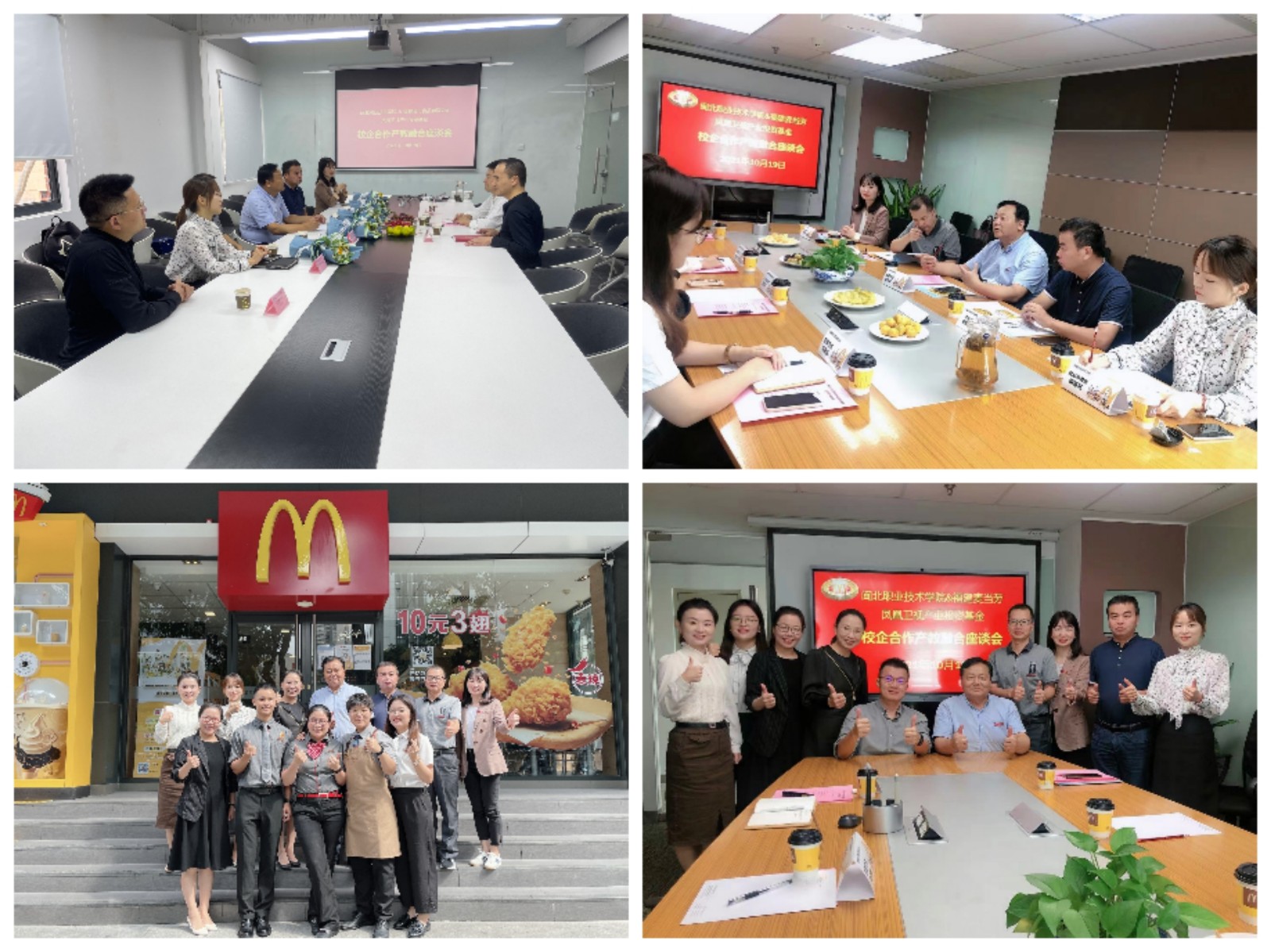 麦当劳(福建)人力资源总监黄燕平、福建若可食品有限公司董事长郑焘、海欣食品股份有限公司董事长助理刘日忠热情接待了谢书记一行并与谢书记就校企合作等方面进行交流探讨。