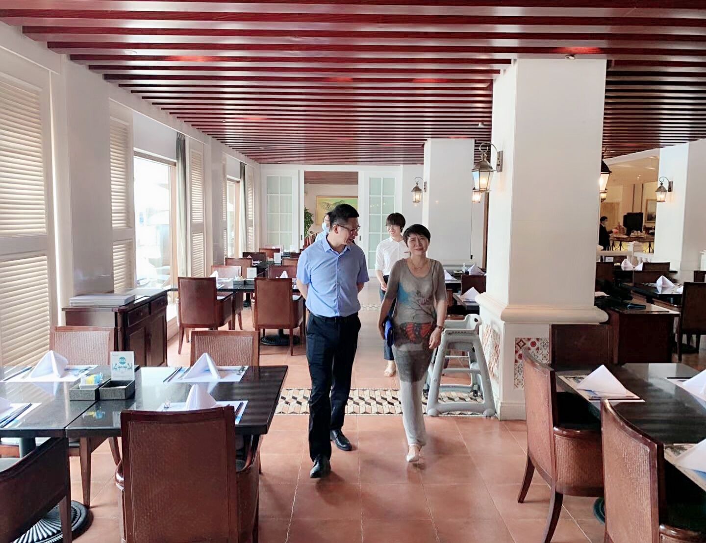 2022年6月17日,叶世森院长一行赴建发旅游集团旗下的五星级酒店——厦门海悦山庄酒店有限公司进行考察。厦门海悦山庄酒店的人事总监王冬梅、人事部招聘经理钟耀宗陪同叶院长一行参观了酒店工作环境、员工宿舍、员工食堂。叶世森表示我院旅游管理专业学生在海悦山庄酒店学习、工作,有助于提高他们的职业综合素质。随后,校企双方就2022届毕业生就业、2023届综合实训及顶岗实习等方面达成初步的合作意向。