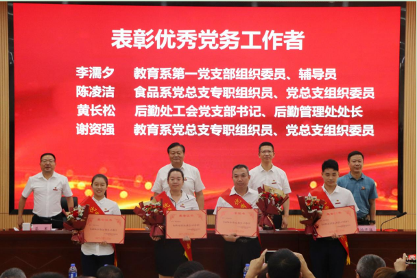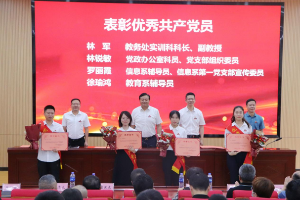 学院党委副书记蔡军宣读了《关于表彰学院优秀共产党员、优秀党务工作者和先进基层党组织的决定》👩🏻🦳,4个先进基层党组织、17名优秀共产党员🥯、8名优秀党务工作者受到表彰,学院领导班子为受表彰的集体和个人颁发了奖牌和荣誉证书。