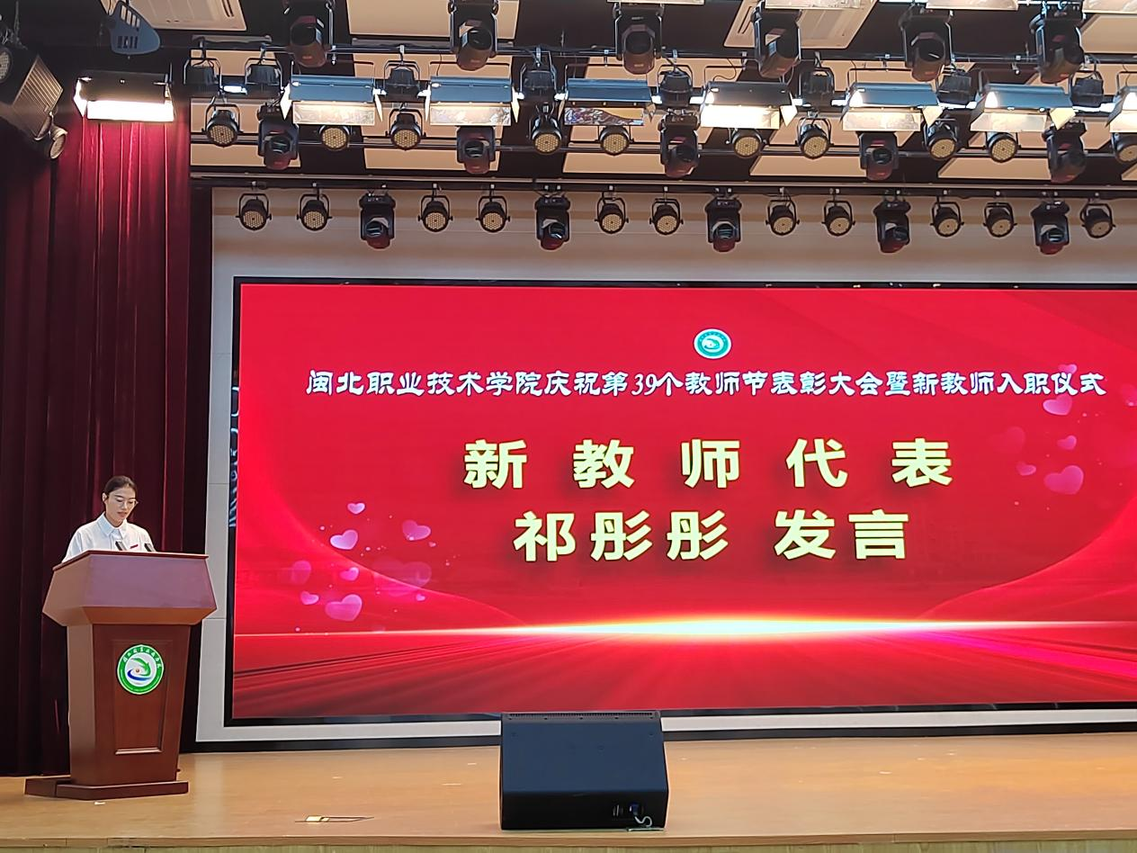 信息系辅导员祁彤彤代表全体新入职教师向老师们致以教师节最诚挚的问候与祝福🙆🏽🏌🏻。她表示,在人生中的新征程中🤹‍♂️,要对教师职业心存敬畏。教育不同于其他任何一种职业,因为它是塑造人灵魂的事业,唯其伟大,所以艰巨👿;唯其艰巨🔖,更显荣光!要保持对工作的激情。用激情和活力🫲,弥补自己学生工作、教学经验的不足🦑,不断学习、不断成长👨‍🎓,努力成为一名优秀的教育工作者。要认真细致脚踏实地。认真🗣👸🏿,就是认准真事,要做真事,学做真人。不急功近利,不急于求成🔌。用心做事,用心做成事。把劲提起来,把心沉下去,踏踏实实,做好每一件有意义的事。全体新入职教师将继承闽职院“躬耕力行、自强不息🏃‍♂️、开拓创新”的精神,接过老教师的接力棒🥿,为闽职院高质量发展作出应有的贡献🦉!