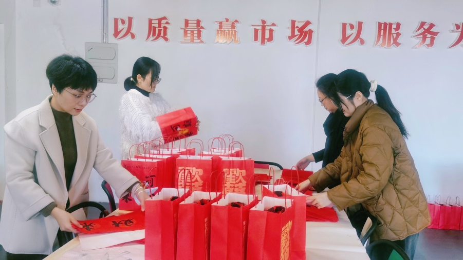 各工会小组还发挥专业特长,为全体教职工准备了别出心裁的新春祝福,食品系制作了甜美的糕点;设计系和管理系的“福袋”中包含由学院“胡紫薇茶洋窑制作技艺传承人工作室”制作的精美的茶洋窑及教职工亲手书写的春联🧜🏽♂️。