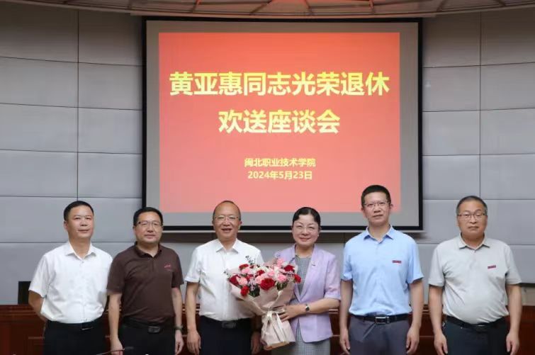 5月23日下午,学院在行政楼一层报告厅召开黄亚惠同志光荣退休欢送座谈会。党委书记张雄,党委副书记、院长叶世森,党委副书记、组织部(统战部)部长蔡军,党委委员、纪委书记冯开猛,党委委员、副院长郑需勇出席座谈会,学院中层干部代表、教师代表参加座谈会,蔡军主持座谈会。
