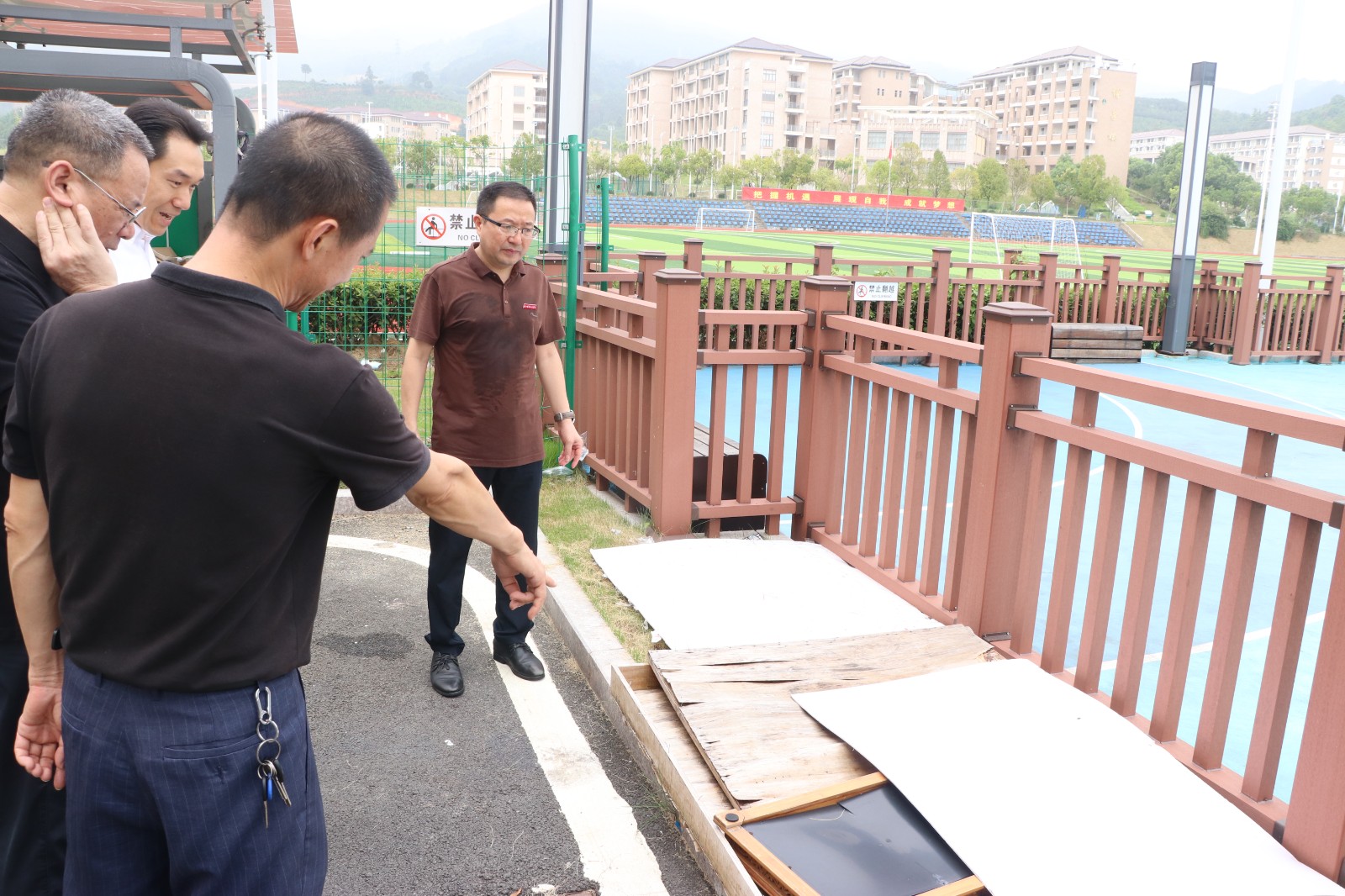 为切实做好2024年秋季学期开学准备工作,打牢校园安全基础,坚决防范和遏制安全事故发生🧑🏻‍💼,确保新学期开学工作有序进行,8月28日,党委副书记、院长叶世森党委副书记⛴、组织部(统战部)部长蔡军🙎,党委委员🧑🏼‍🦰🤾🏽‍♀️、副院长郑需分别带队进行校园安全大检查👨🏽‍🔬,学院各相关部门负责人参加。IMG_9956.JPG