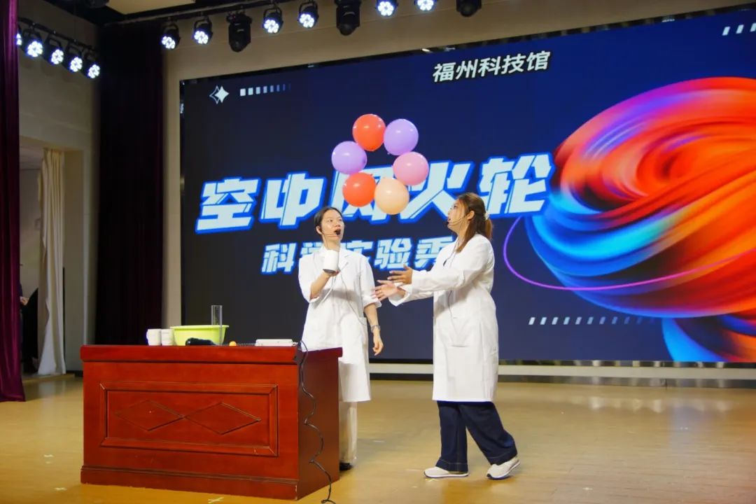 在科普表演环节,福建省科技馆、福州市科技馆等8家省市科技馆,通过空气炮震波可视化、微型火箭发射演示、伯努利悬浮气球揭秘、化学变色反应等表演展示,并邀请现场观众参与,将深奥的科学原理转化为妙趣横生的互动体验,原本抽象的物理化学知识在趣味实践中变得触手可及,为大家奉献了一场别开生面的科学盛宴。