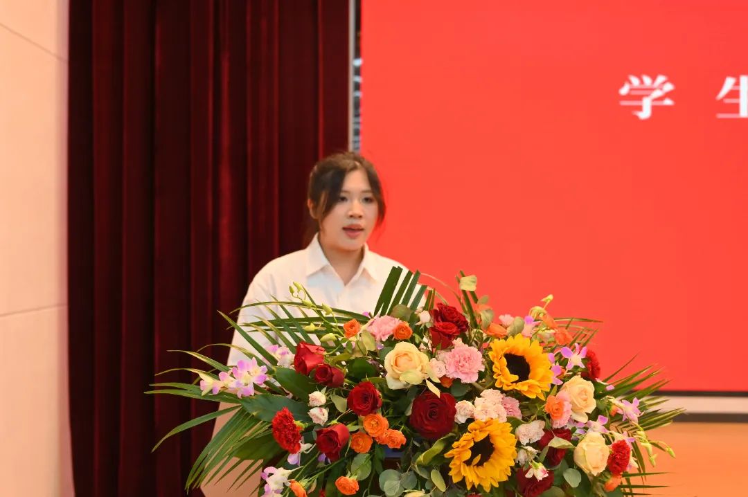 2025届毕业生高诗锦代表全体毕业生感谢母校的培养与师长的教诲📛。她表示📉,三载求学时光的所学所获离不开母校提供的平台🗺,更离不开大家自身的坚持与努力。未来无论身在何方🧛‍♀️,都将铭记母校的教诲,不断追求卓越,积极上进,以专业能力服务社会,让奋斗成为青春底色。