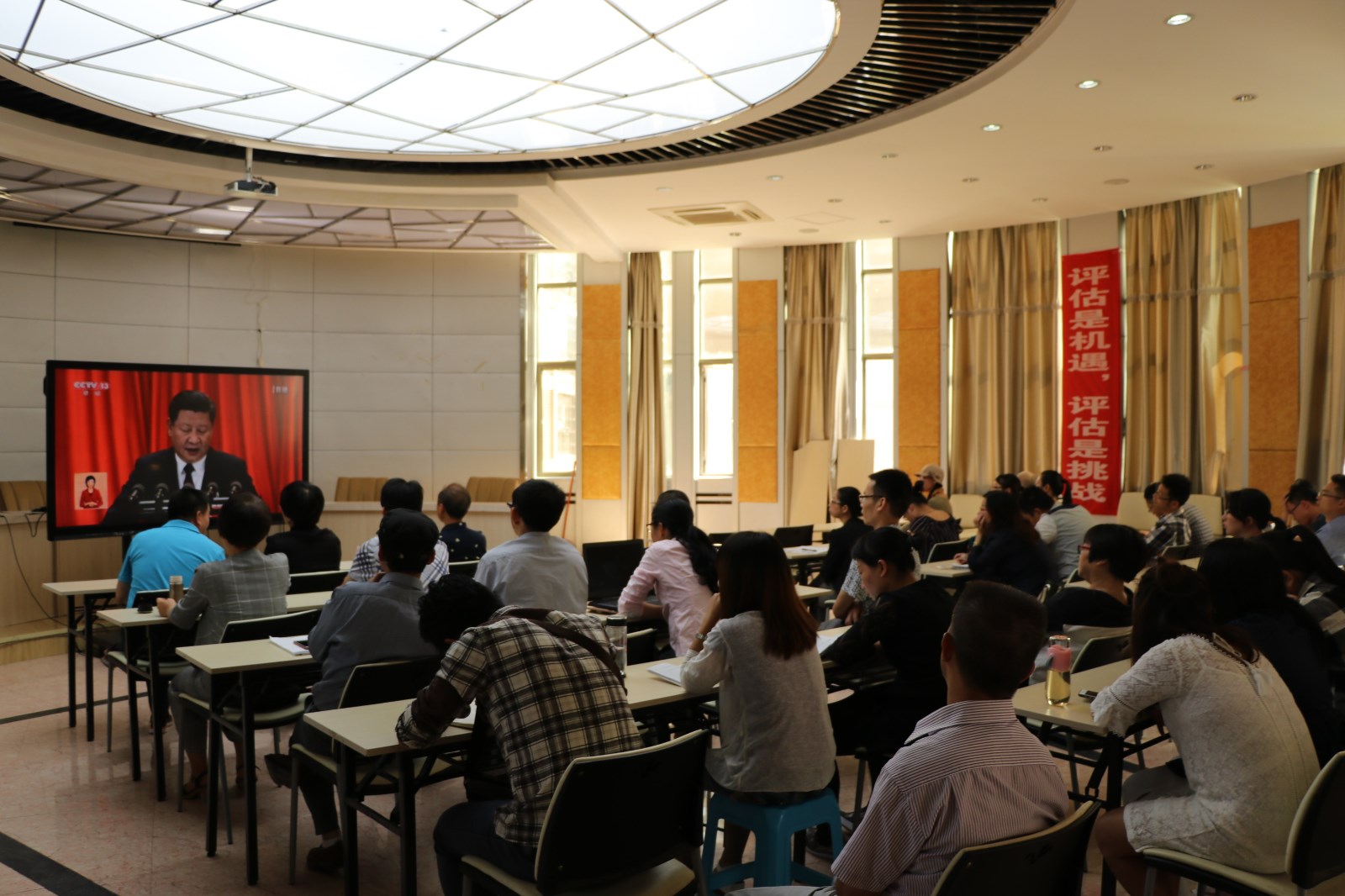 10月18日🥷🏼,举世瞩目的中国共产党第十九次全国代表大会在人民大会堂隆重开幕。彩神组织全体教职员工在第一时间收听收看十九大开幕式直播,现场聆听习近平总书记向大会所作的报告。