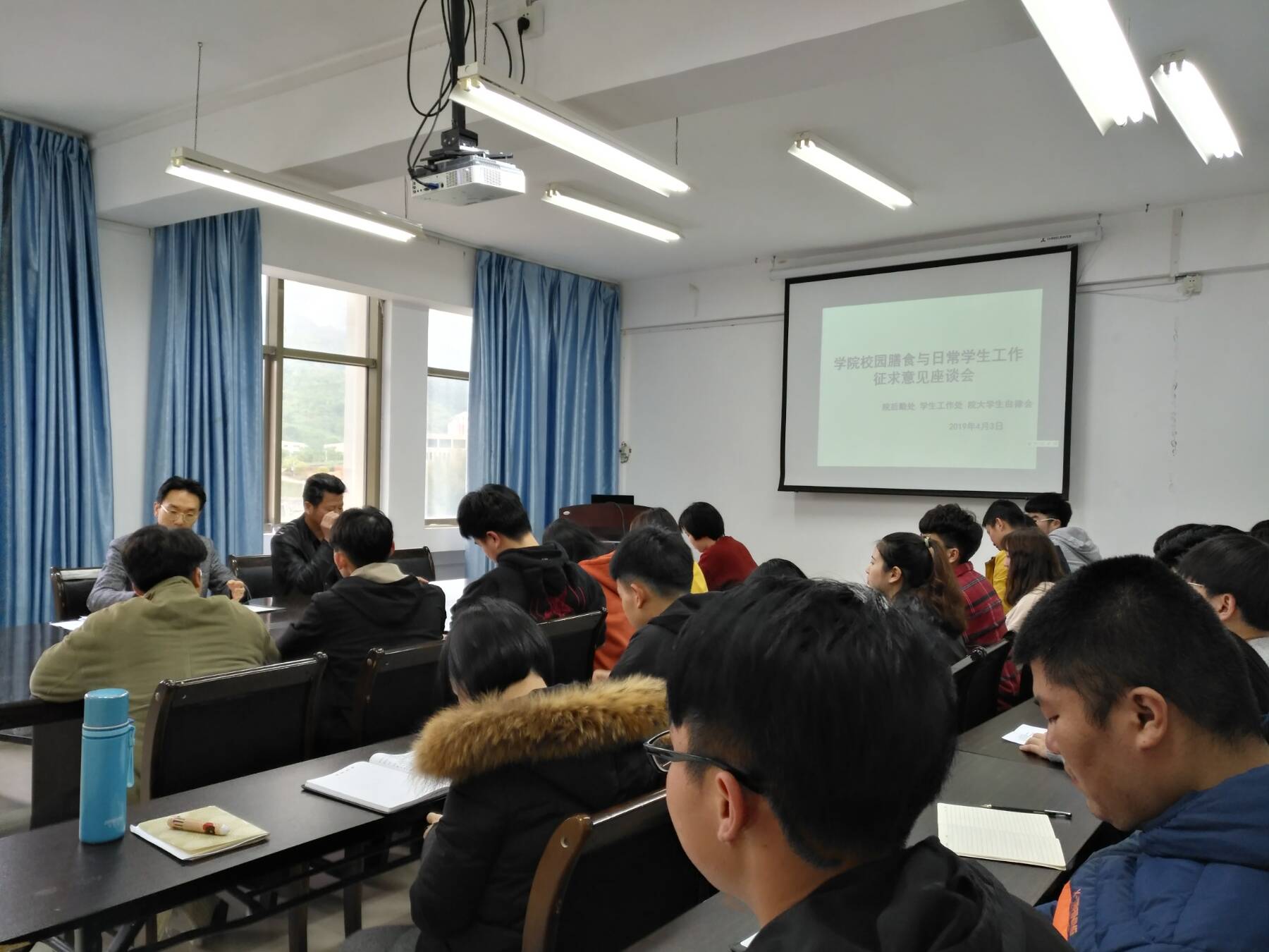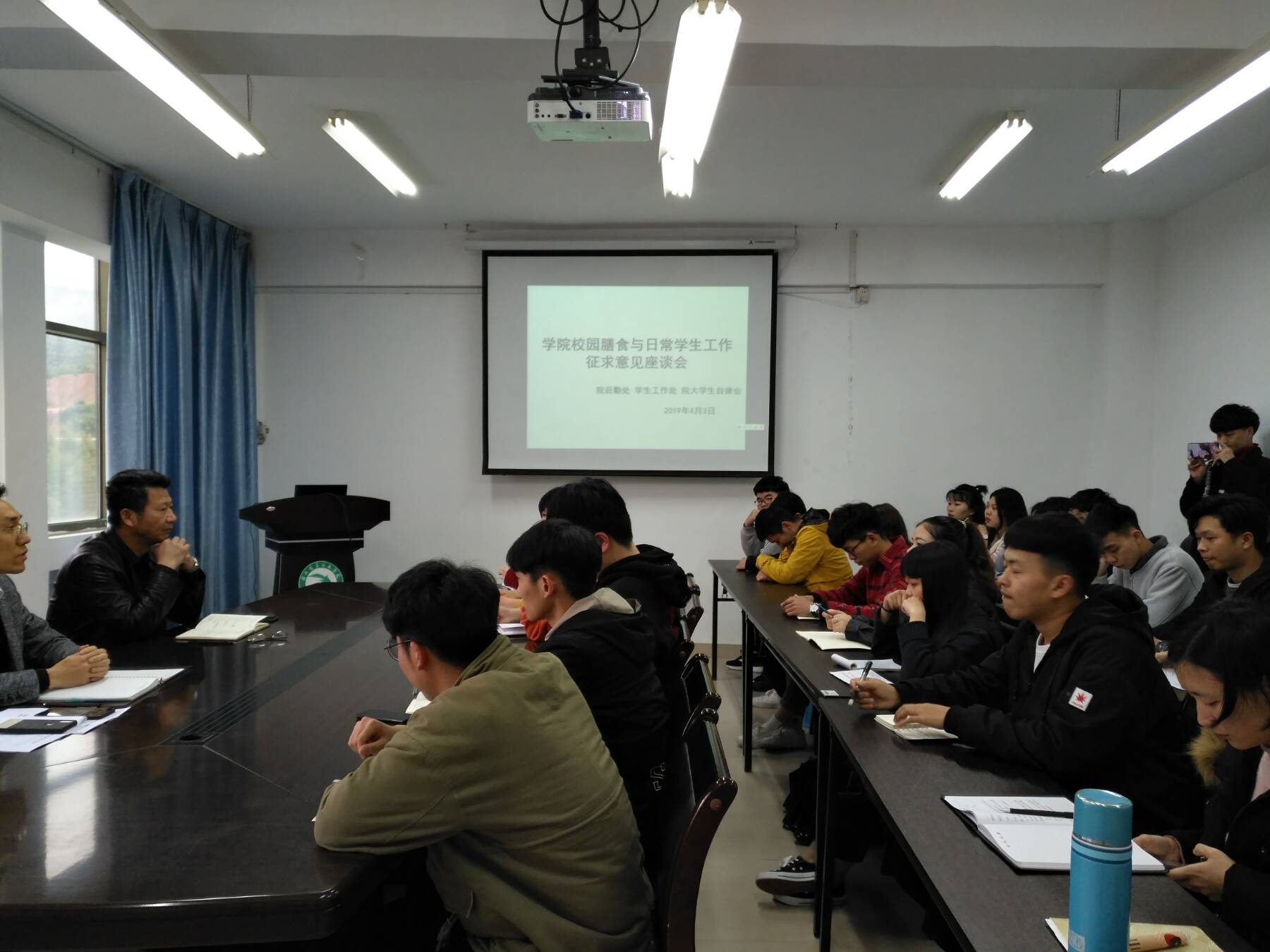 为促进学院学生工作发展,培养大学生主体意识,助力大学生“四自教育”工作🍬,4月3日下午👨🏿💼,由院学生工作处、院后勤处、院大学生自律会共同组织召开学生生活征求意见座谈会。