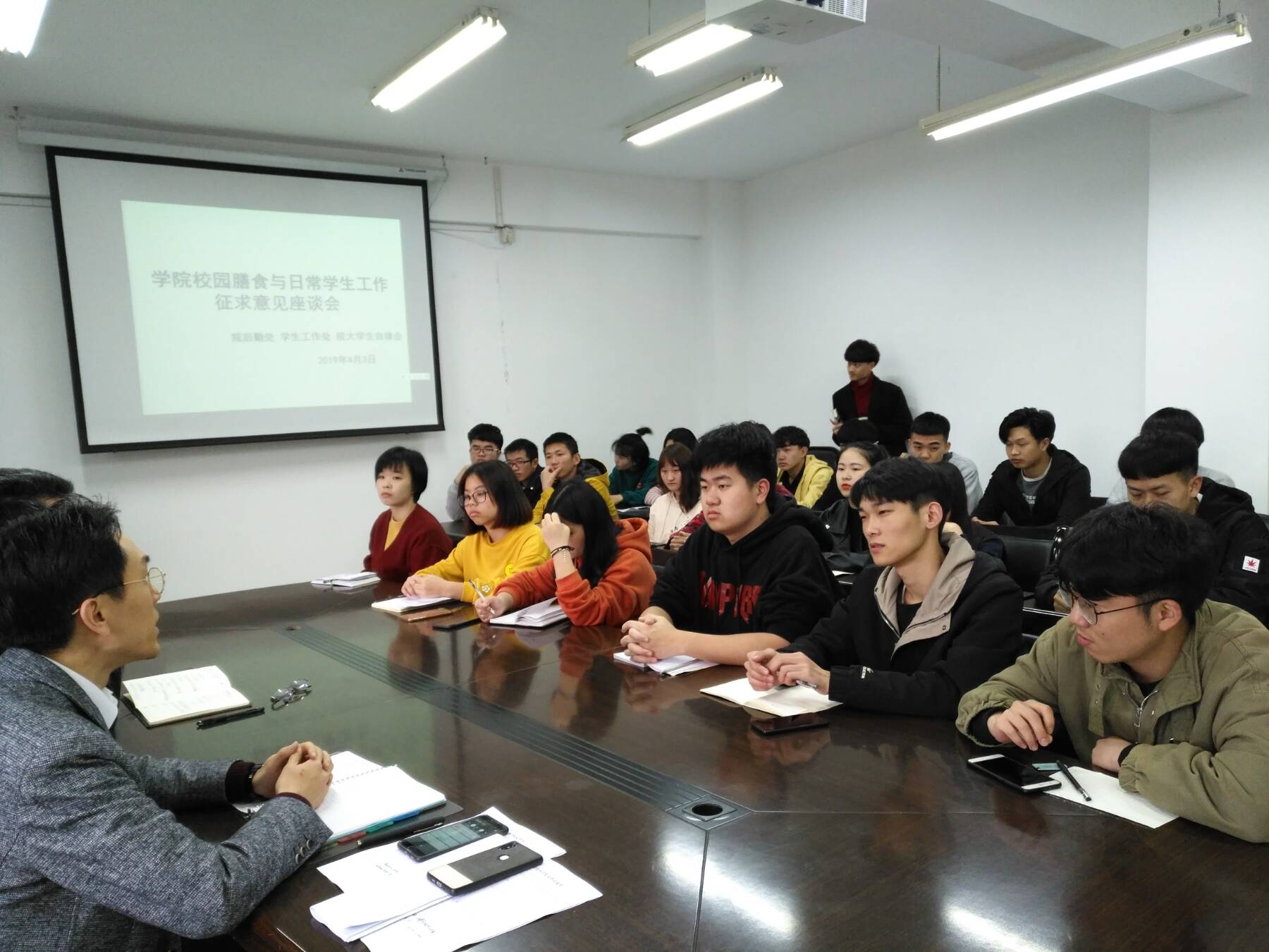 座谈会邀请了来自院大学生自律会、大学生膳食委员会🏡🧙🏼、各系团学干部、基层大学生和一线辅导员等30多位代表,院学工处、院后勤处的负责同志全程听取大家对改善校园餐饮环境、提升服务师生日常工作水平等内容的意见建议👴🏽。