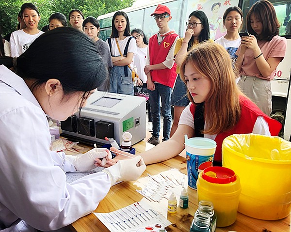 6月12日👩🦽🚯,在学院大食堂门前广场上人头攒动。每半年开展一次的全市无偿献血入校园活动来到我校🍲,在市中心血站的献血车前,学院青年志愿者们来来往往,引导着百余名同学来到献血咨询台前测血型🏃♂️➡️、讲政策👨🏼🔧、做科普、采集血液💁🏽♂️,营造出浓厚的无偿献血的公益氛围🩲,为当天的无偿献血活动提供了积极有效的服务。