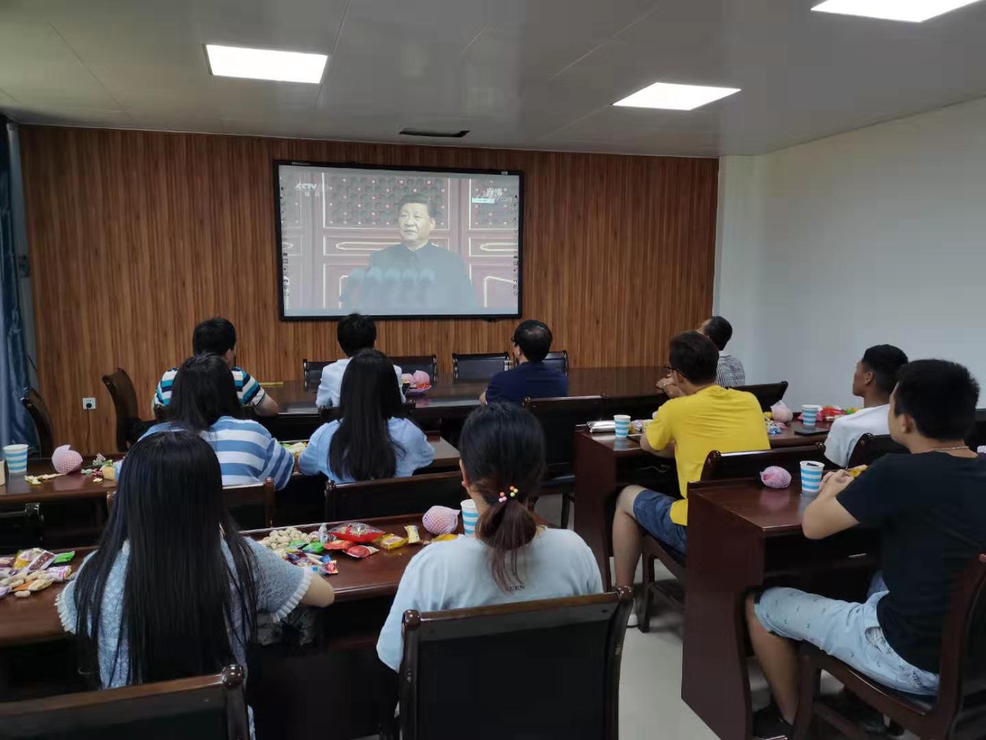 设计系和管理系联合党总支为了做好少数民族学生和国庆期间留校学生的管理服务工作,10月1日上午,党总支詹茂光书记等党员干部到校慰问国庆期间留校的少数民族和省外学生,并与学生们一起收看了习近平总书记在庆祝中华人民共和国成立70周年大会上的重要讲话、阅兵式及群众游行活动。