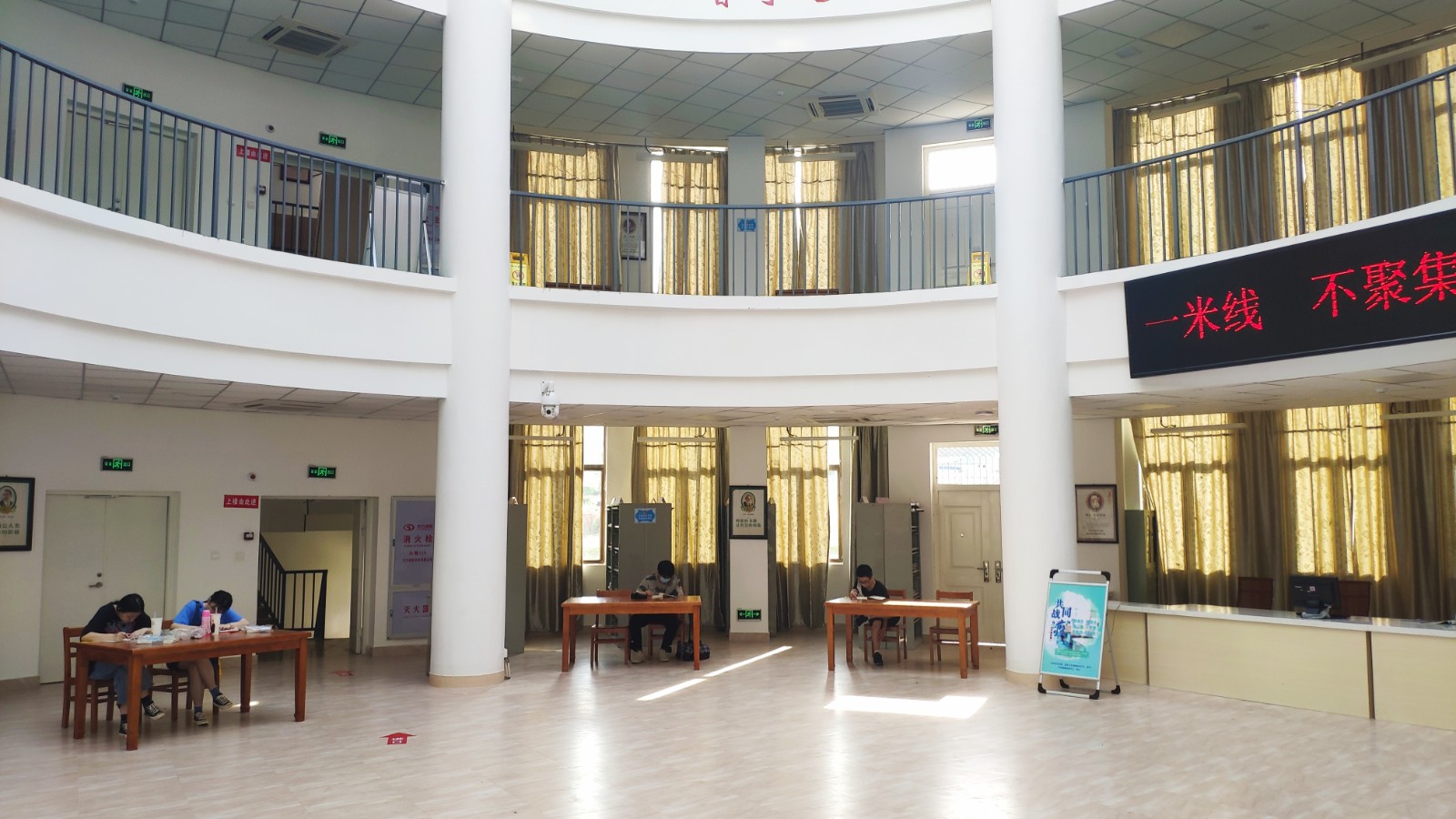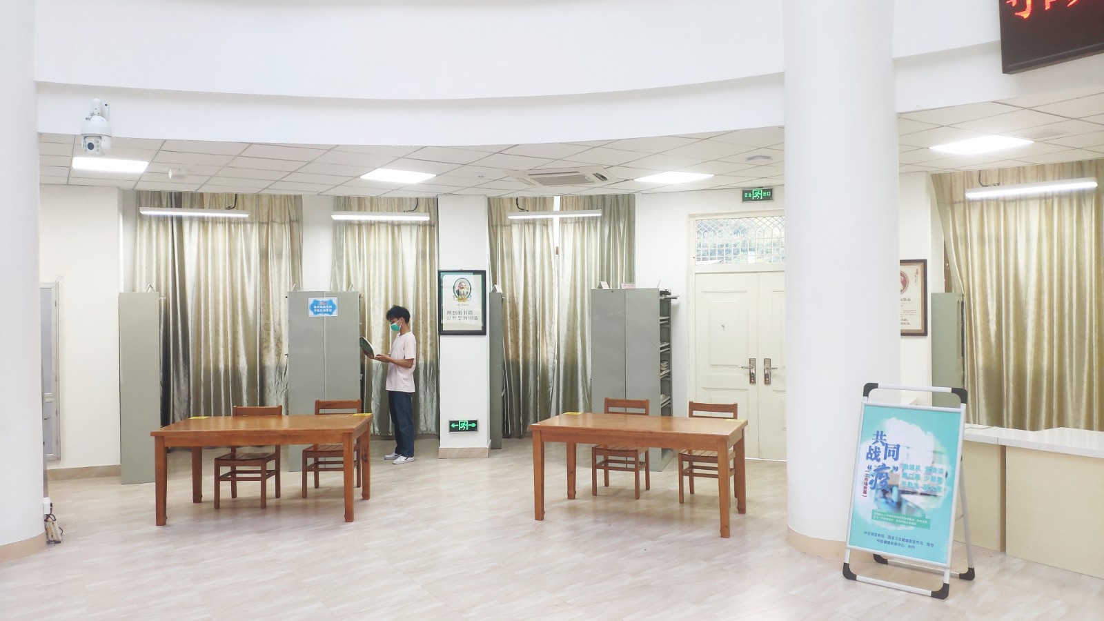 每天上午八点半开馆以后,陆续有佩戴着口罩的读者在工作人员的引导下,秩序井然地从图书馆左侧大门,经过信息登记、体温检测正常后进入图书馆。自习室里🫄🏽🏄🏿,读者们按照“间隔1米、同向而坐”的落座方式,就座在有安全标识的座椅上。前来阅读的小许同学表示:“宿舍不比图书馆有学习氛围👨👩👧⛹️♀️,学习效率自然也就没那么高🈶,所以还是喜欢来图书馆。”对于疫情期间图书馆的防控举措,小许同学觉得很到位🛐:“比如限流开馆,比如每日一次的全面消杀,以及佩戴口罩检测体温等,都让人觉得很安全很周到🧏🏿✴️。”