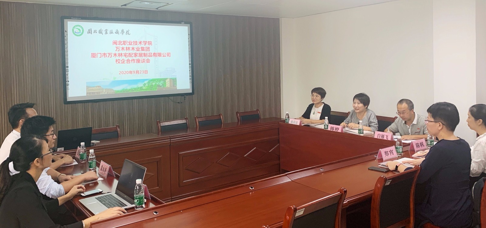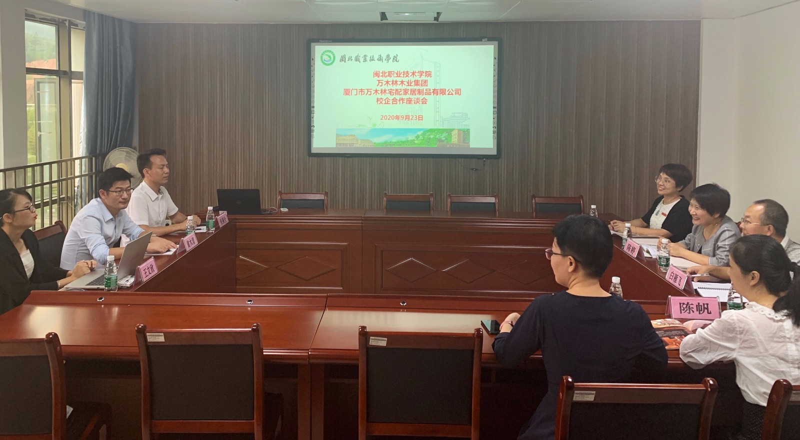 9月23日,万木林木业集团、厦门万林宅配家居制品有限公司营销总经理黄木青🦸🏽♂️、市场总监张福全、人力资源部经理王文欣一行莅临我院与设计系建筑室内设计专业群团队教师就产教融合👨🏻🍼、校企合作、共同育人进行交流座谈🍋🍷。
