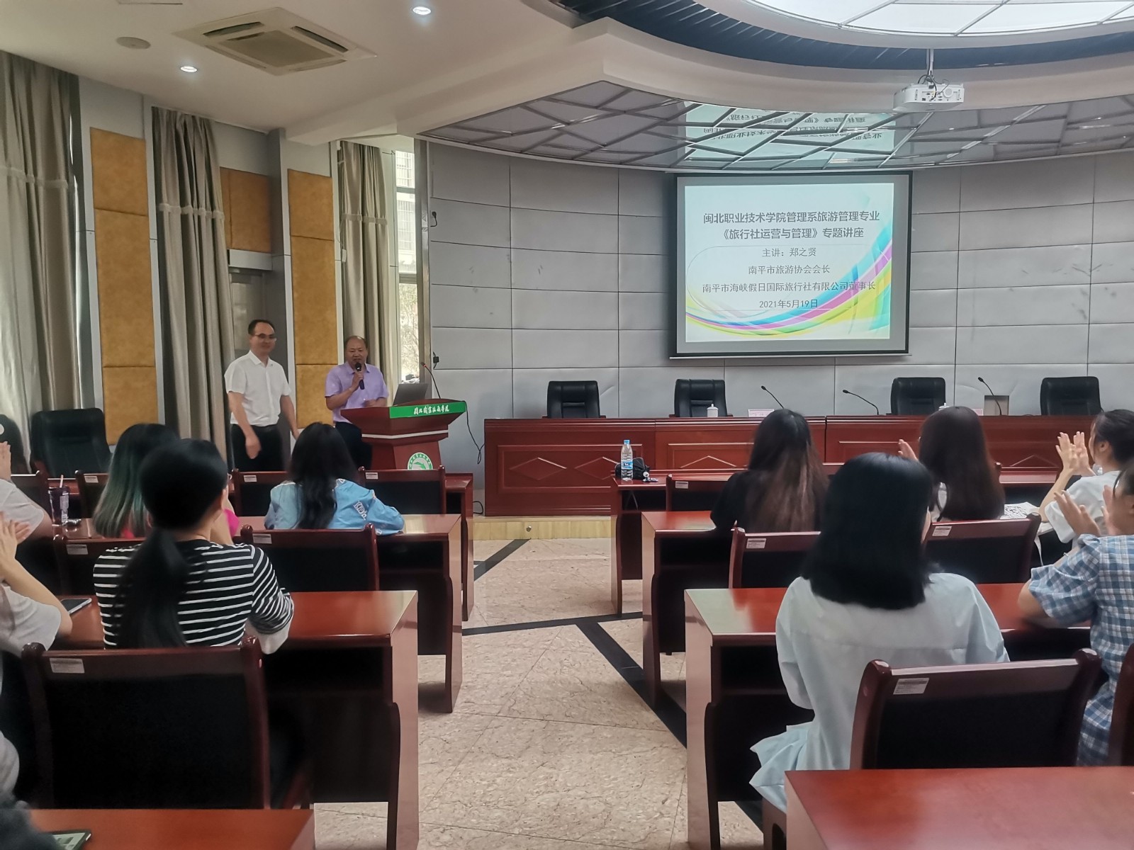 2021年5月19日👨🏿🎓,我系旅游管理专业邀请到南平市延平区旅游协会会长💵😖、南平市海峡假日国际旅行社有限公司董事长、我校特聘专家委员会委员郑之贤为19级旅游管理专业学生开专题讲座。郑董事长结合他多年工作经验⬆️,为学生详细地介绍了旅行社经营与管理相关业务内容👨🏻💼🦙。经过讲解,学生对旅行社采购业务、销售业务、线路报价等专业知识有了进一步的了解。讲座结束后,和学生们进行了面对面的交流,解答了学生对旅游专业职业规划🧔🏿♂️、旅游产品销售、旅游实习等内容的疑惑。