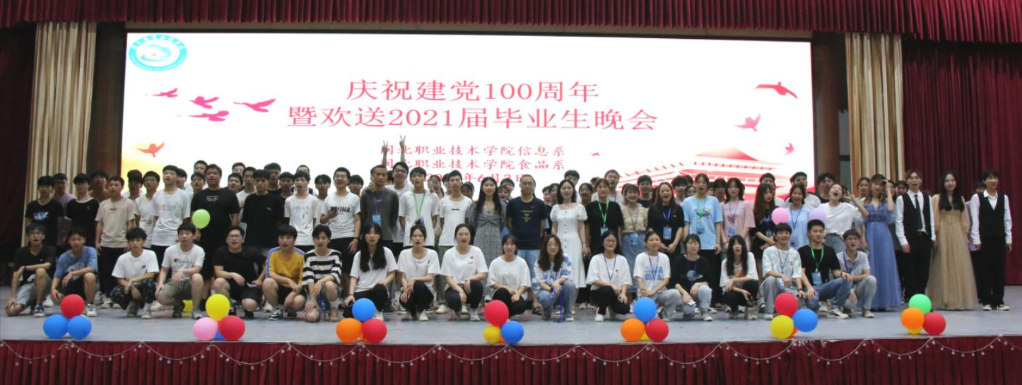 为庆祝建党100周年🌴,传递校园青春正能量🤘🏽、欢送2021届毕业生👩👩👧,2021年6月3日晚,信息系、食品系举办“庆祝建党100周年暨欢送2021届毕业生”晚会⛹🏻,晚会在院体育实训中心隆重举行🤽🏼。学院党委书记谢友平参加。