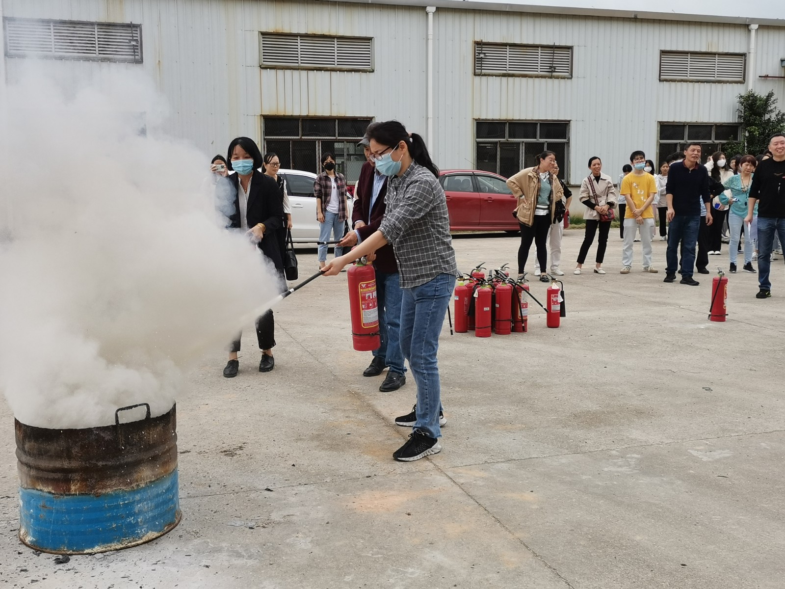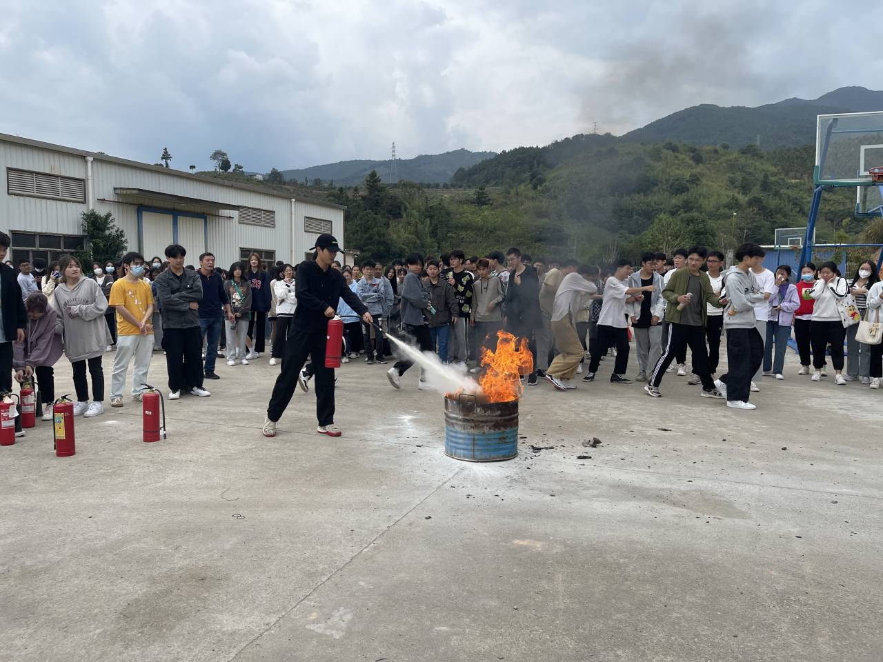 学生撤离到安全避险操场后,参演师生在保卫科老师的指导下,掌握灭火器的正确使用方法,训练使用灭火器进行灭火,提高了初期火灾的扑救能力。