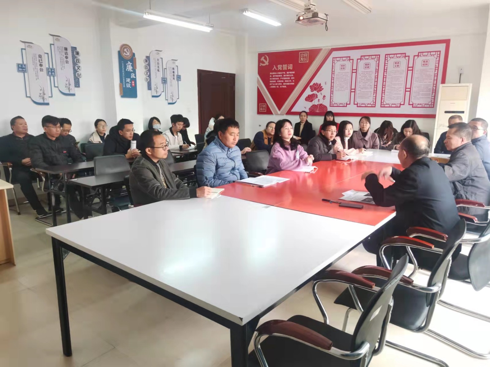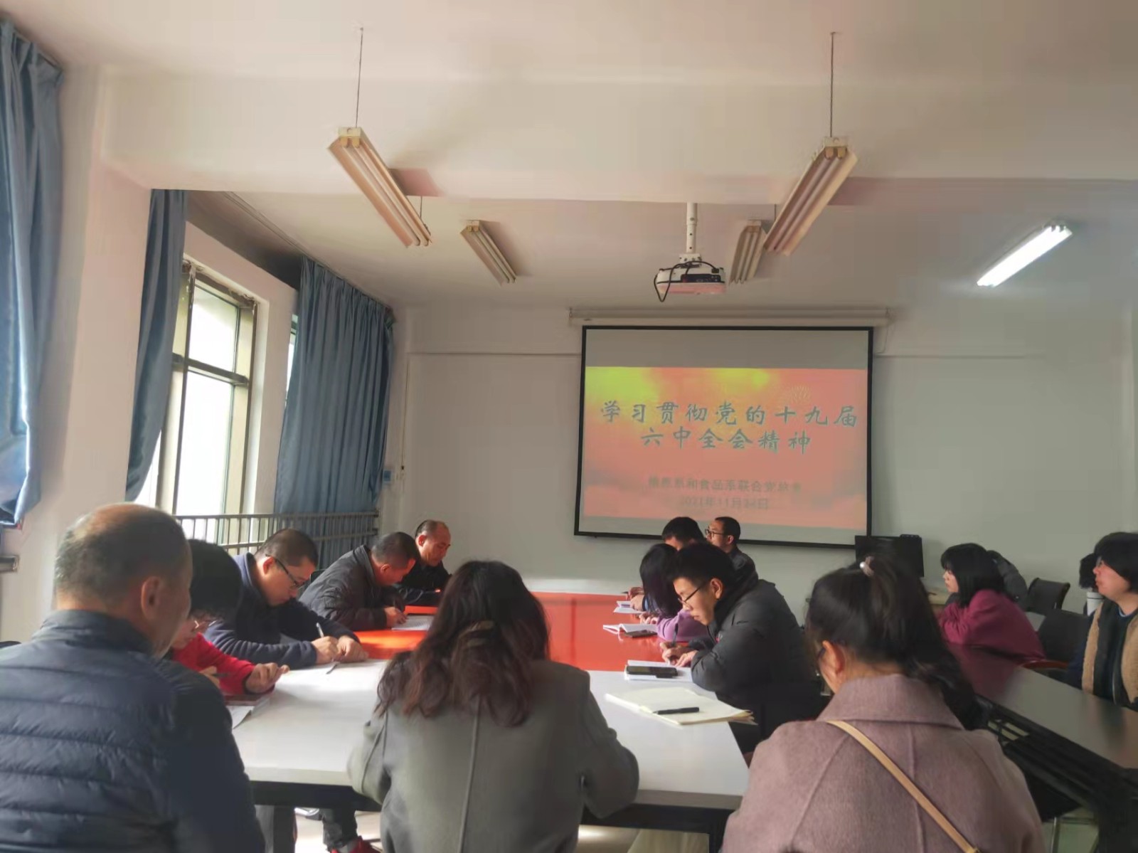 11月24日下午🌲,信息系和食品系联合党总支召开党员大会,专题学习贯彻中国共产党第十九届中央委员会第六次全体会议精神,会议由系党总支书记郑启阶主持🍟。