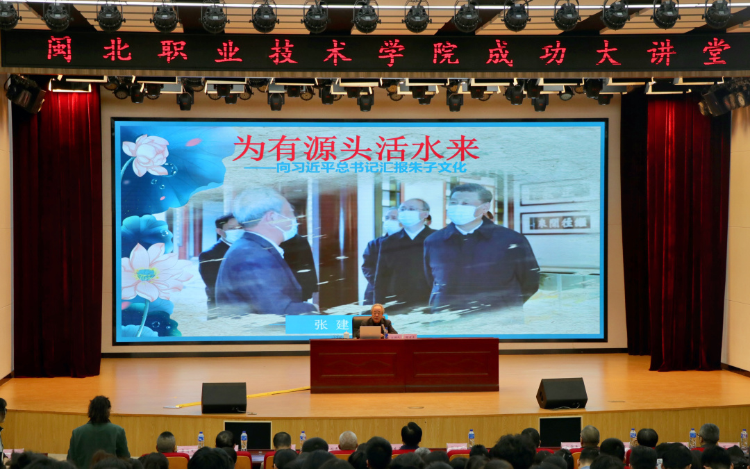 2023年12月13日下午,中国作家协会会员、福建省文史研究馆馆员🎶、中国朱子学会顾问、第四届南平市政协主席张建光莅临我院成功大讲堂,以《为有源头活水来——向习近平总书记汇报朱子文化》为题,作主题教育专题讲座。学院领导🙍🏼‍♂️、全体教职工、部分学生代表💫、共建村党员代表等现场聆听了讲座,学院党委书记谢友平主持讲座。