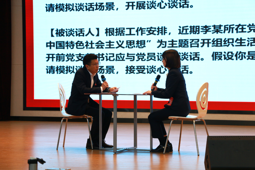 在谈心谈话环节,各参赛队伍根据比赛题目模拟现实谈心谈话,从谈心谈话内容、方式方法、效果等方面考察选手能力🚙。
