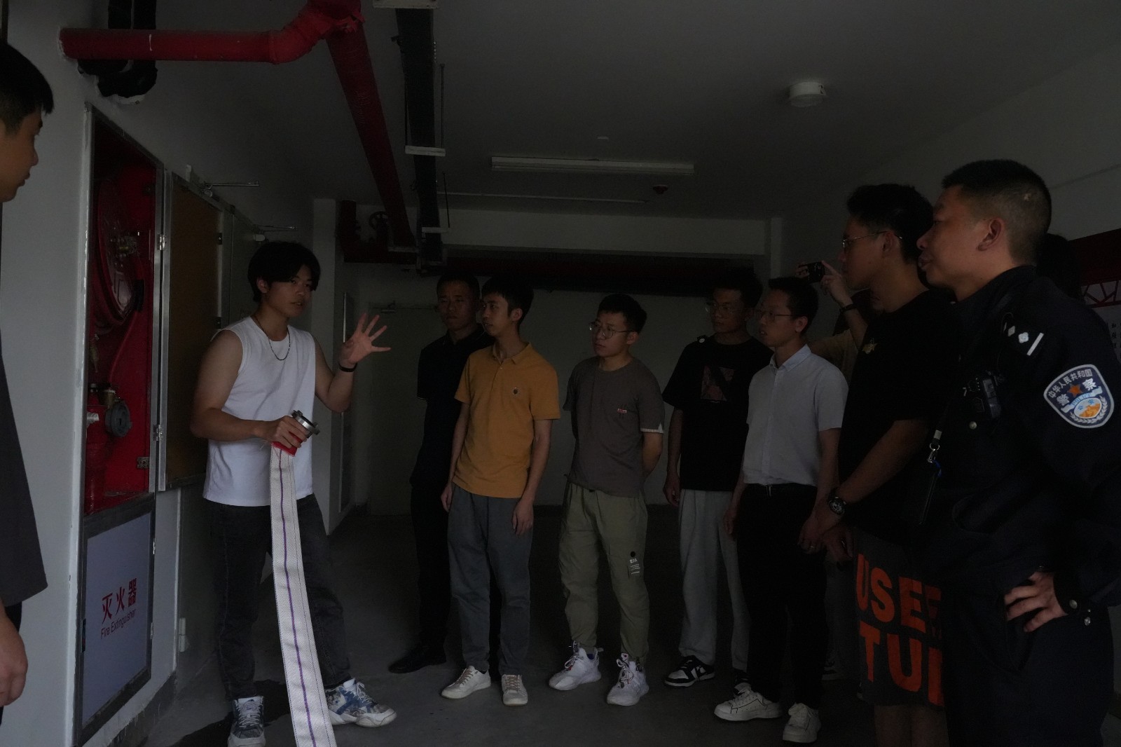 消防专员讲解了消防栓的使用方法:发生火灾时打开消防栓箱,若火势比较小时可以两个人配合拉出红色软管,一人拿水枪头对准火源后打开开关🏋🏼💢,另一人看指示开、关水阀👰♀️🈚️,然后两人配合收好红色软管,最后把水枪头的开关关上。