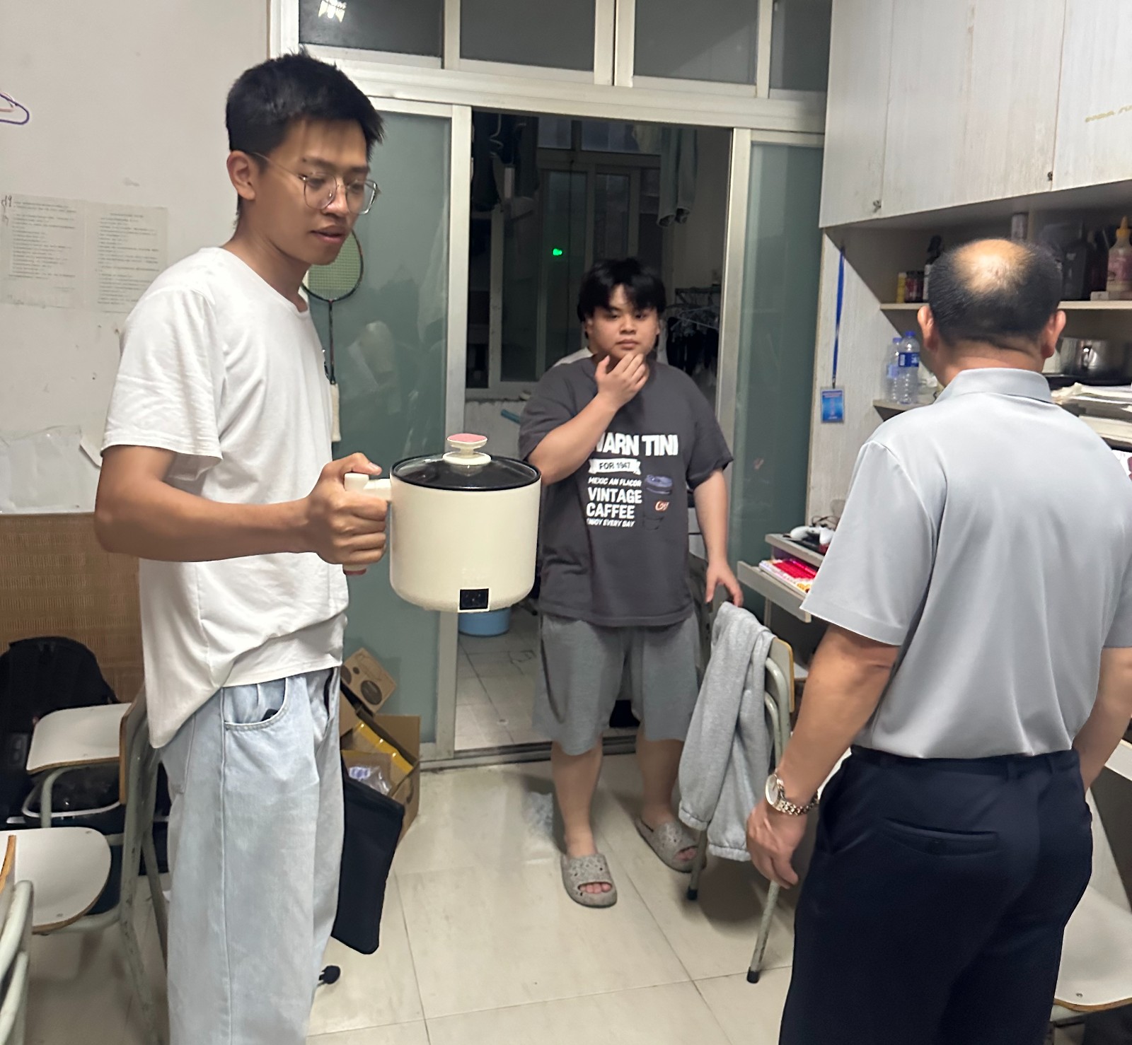 最后,郑书记带队分组深入食品系所有学生宿舍进行违规电器大检查🕚。各小组对照学院安全隐患排查的要求和标准,对学生宿舍违规使用大功率电器🧖🏼、私接电源电线等情况进行全面排查,对违规物品进行暂扣处理,并对检查过程中发现的安全隐患问题进行整改。