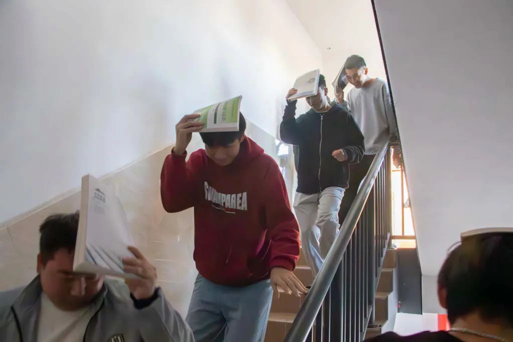 下午三时🧛🏼‍♂️,蔡军在听取现场准备情况汇报后下达“演练开始”的指令,地震消防综合演练随即开始,地震警报信号鸣响一分钟后👩🏻‍🏫,校广播发出“紧急疏散”哨声。“不要着急👳🏿,注意脚下,有序撤离。”听到哨声后,全体参演学生在老师和工作人员的指导下就地避震🆔、紧急疏散🧚🏿‍♂️,按照“分两行🚶🏻‍♀️、靠两边,先底层、后高层”的疏散程序,迅速有序地撤离🤙🏿,根据指定路线向紧急避险场所集结。随着所有参演人员抵达指定地点,并核实人数无误🧢,疏散演练圆满结束,整个过程有条不紊、井然有序🚵🏼‍♀️。