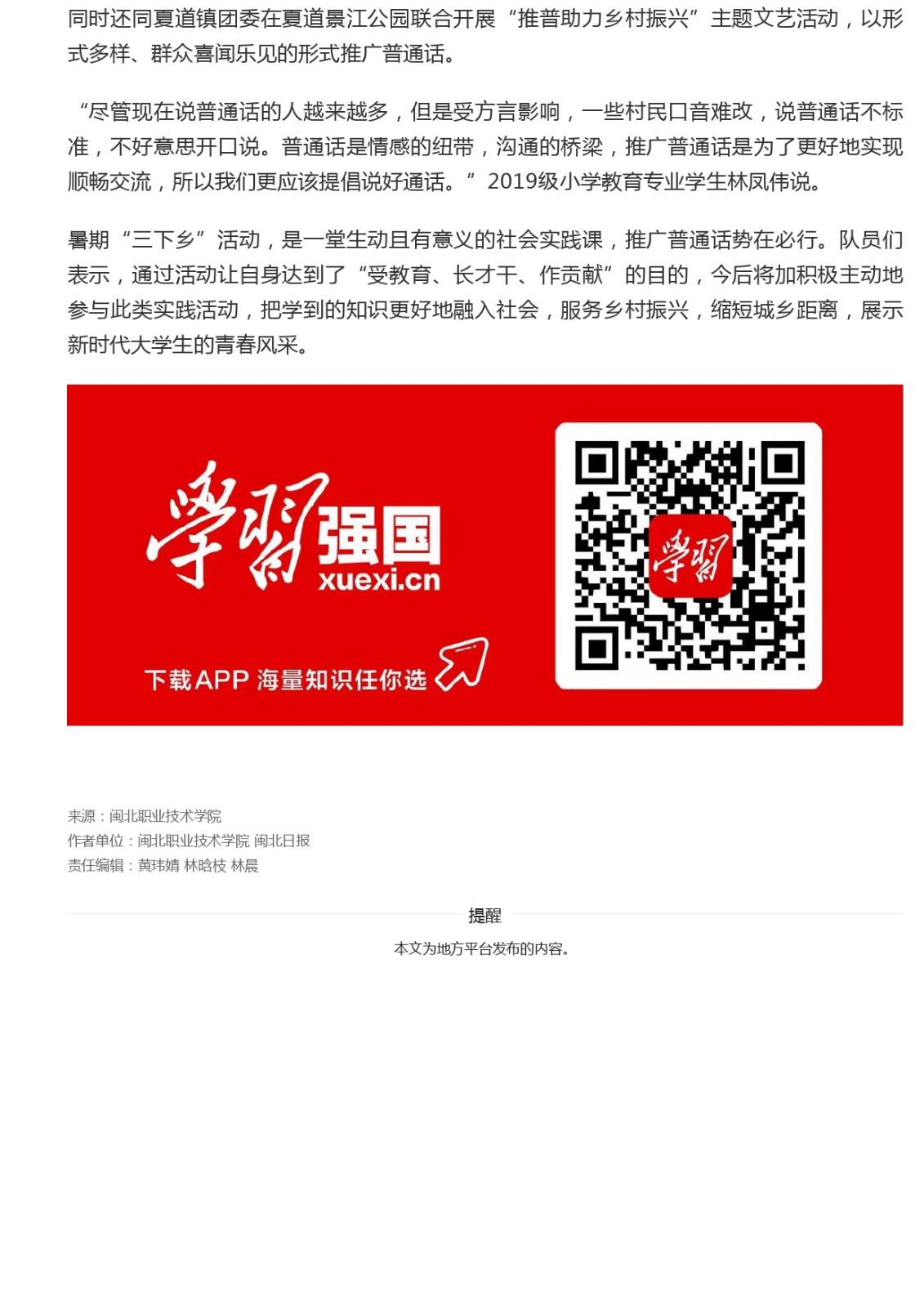 “阿姨,您和亲朋好友聊天是说方言还是普通话呢🤦🏼♀️?”“和孩子们交流还是尽量使用普通话比较好💖。”近日,南平市延平区夏道镇的村头巷尾忽然热闹起来👨🏼✈️,彩神教育系团总支联合夏道镇团委在这里开展了推广普通话、助力乡村振兴的暑期“三下乡”社会实践活动。