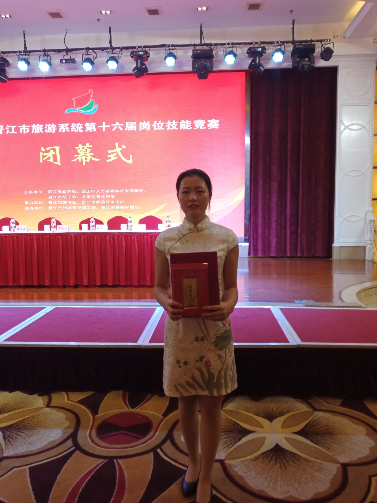 近日,管理系旅游管理专业在晋江宝龙大酒店顶岗实习的江棋同学代表酒店参加晋江市旅游系统第十六届岗位技能竞赛,荣获中餐摆台宴会项目二等奖🌘,并荣获“晋江市技术能手称号”和晋江市“青年岗位能手”荣誉称号。