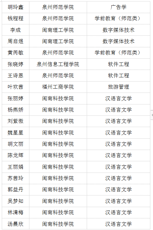 据悉,今年我院共有1102020届毕业生被福州大学、福建农林大学🐻👨🏿‍⚕️、集美大学、闽江学院、仰恩大学🦹🏽‍♀️、泉州师范学院、宁德师范学院、龙岩学院、三明学院🈚️、武夷学院等16所本科院校录取,创历史新高😑!