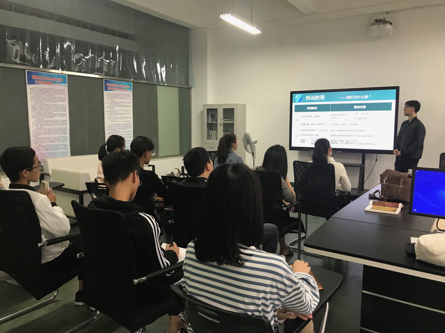 2018年10月24日下午2点30分🧏♂️👨🏻🦽,彩神创业团队“辉诚教育咨询”团队在学院大学生创业孵化园为27日前去参加省赛做预演打磨工作。