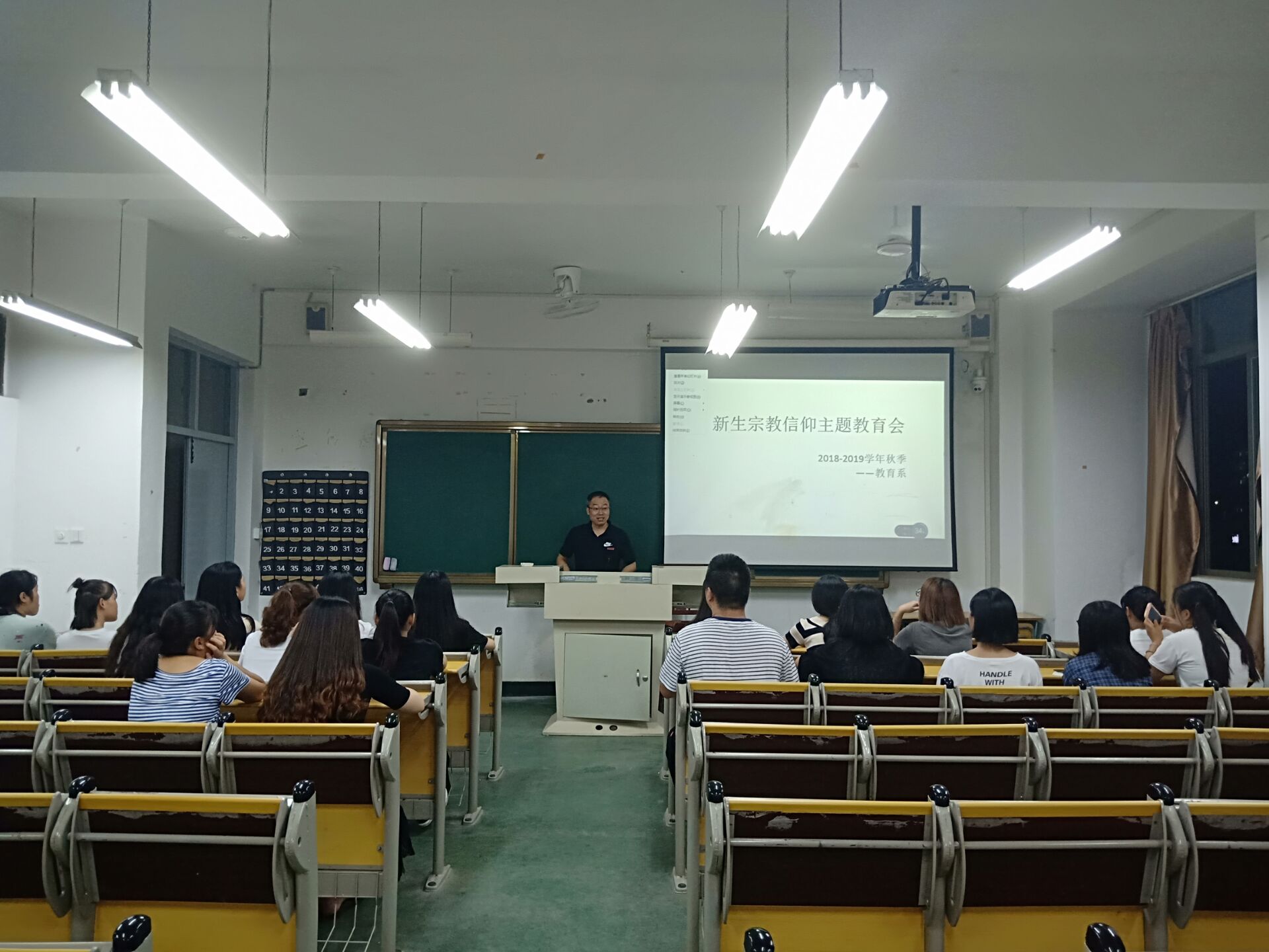2018915日晚700☑️,闽北职院教育系在5号教学楼304室召开新生宗教信仰主题座谈会🦻🏼。教育系总支鞠建恩书记、辅导员及学生代表共20余人参加了座谈会。