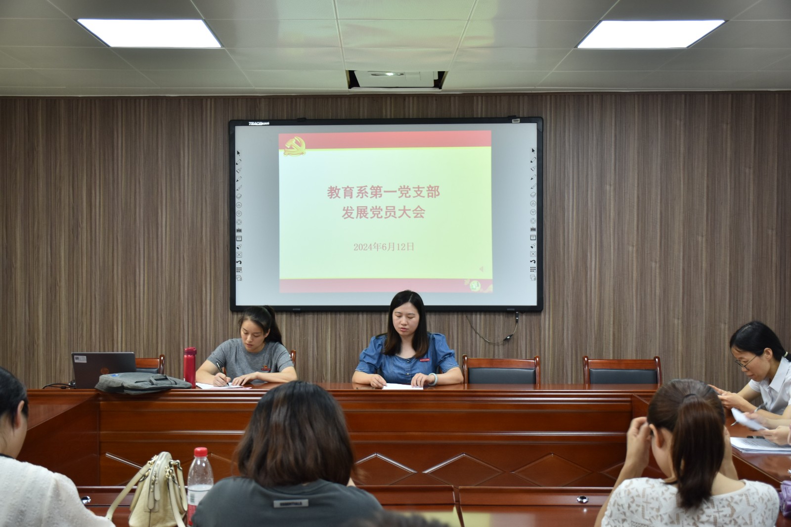 为响应党的号召🧑🏿‍🏭🧔🏻‍♂️,培养优秀共产党员⏰,20246月12日下午,教育系第一党支部在行政楼607会议室召开预备党员吸收大会,参与本次会议的有教育系第一党支部所有党员以及8名拟吸收对象,会议由支部书记陈芷璇同志主持🧛🏻。