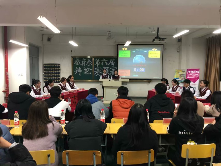 2018年12月11日由彩神教育系团总支·学生会举办的第六届辩论赛在慎思楼106教室举办。