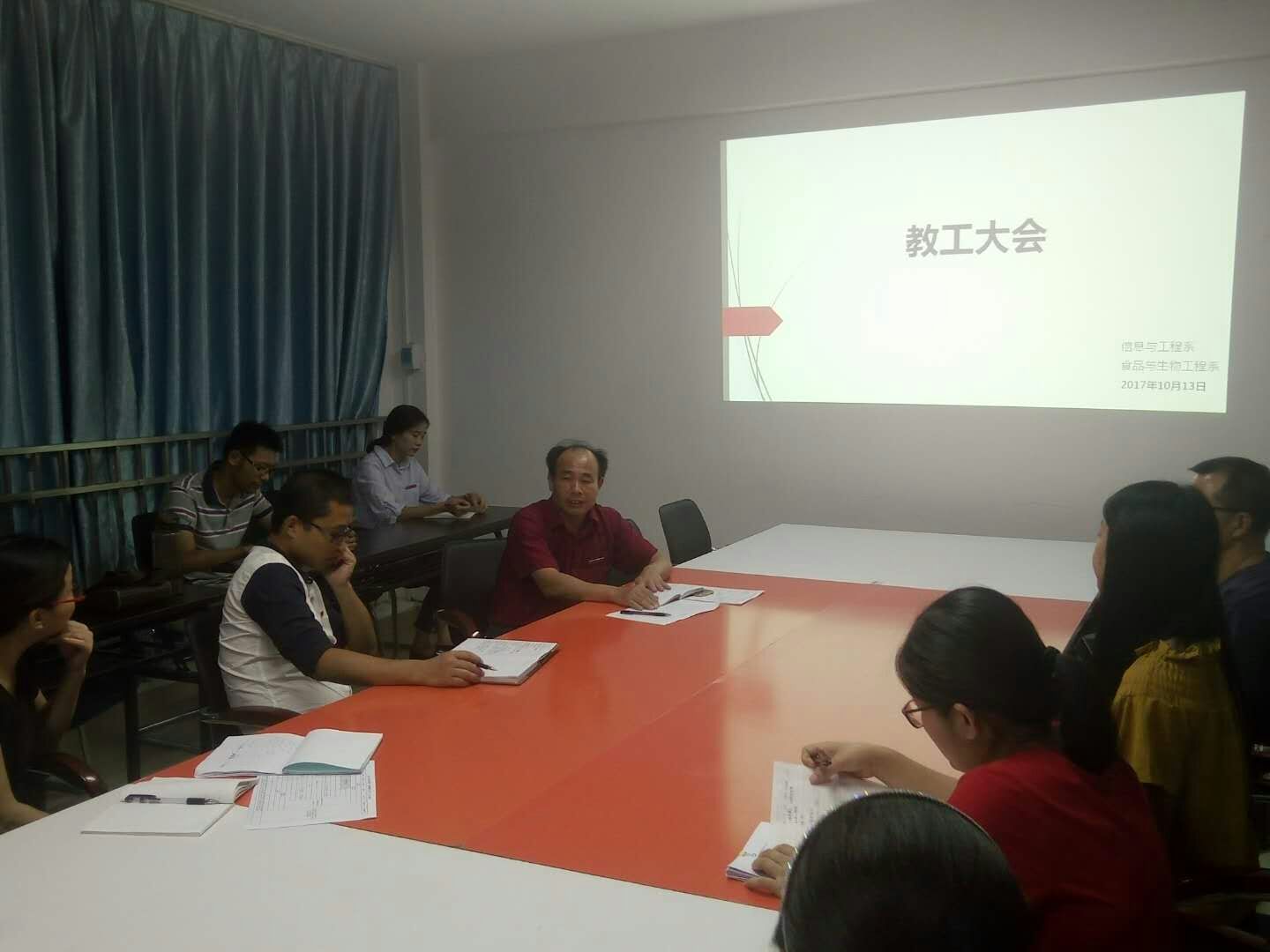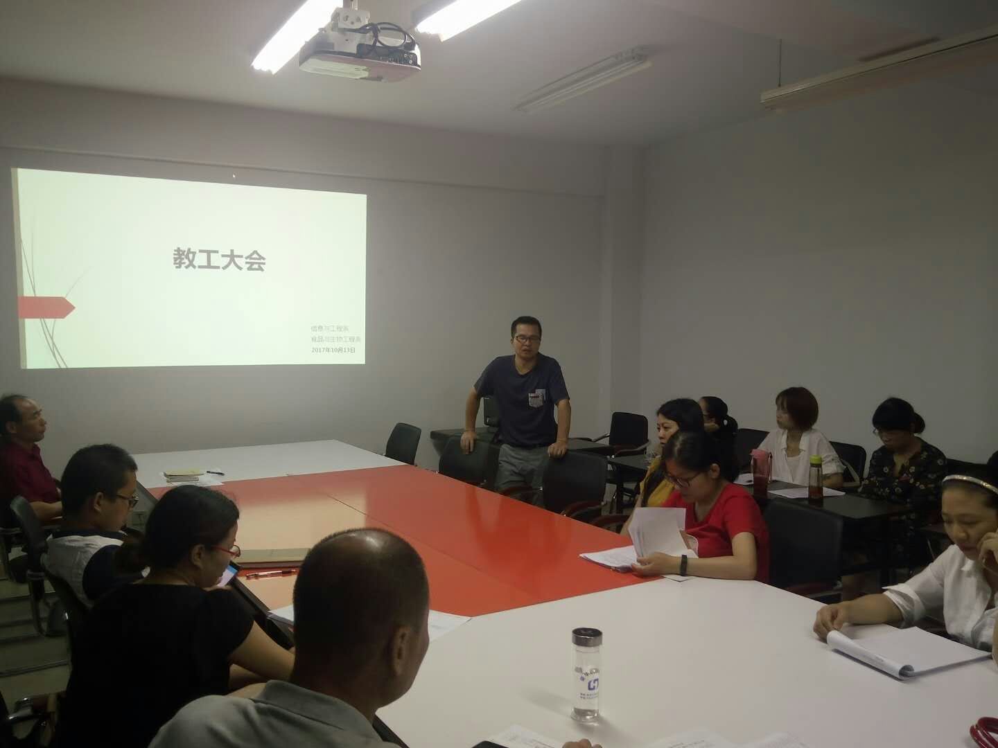 10月13日下午🍏,我系召开了预评估整改落实及迎接南平市文明学校检查教工大会🧔🏽♂️👨🏭,系主任张金良主持会议。张主任对我院二轮评估前的预评估整改方案进行了详细认真的解读,同时对二轮评估下一环节冲刺阶段的工作进行了周密部署🏌️,对课程说课及专业剖析作了重点安排🎶,要求全体教师要按学院及我系的时间节点保质保量完成每一项任务。