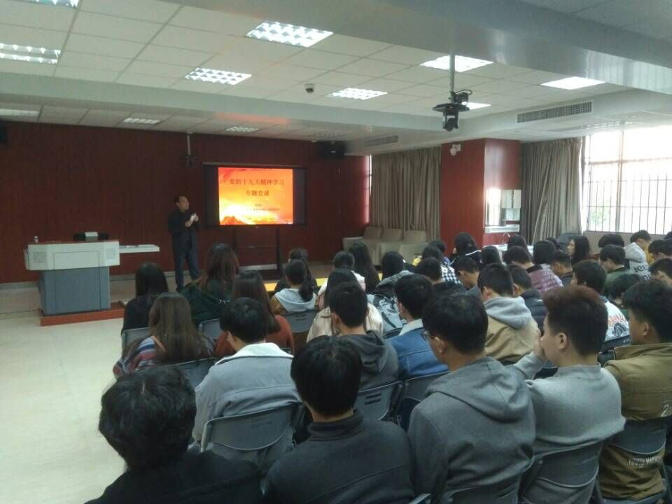 2017年12月7日下午,系常务副书记郑启阶为系学生干部、入党积极分子上了一堂生动的学习党的十九大精神专题党课。他对十九大后修改通过的党章进行了叙述,重点对“党和共产主义青年团的关系”进行了详细讲解🥙👎🏽;勉励广大同学在学习生活中要树立远大的理想🚴🏽♂️,要有坚定的信念🗄,希望同学们早日加入党组织🧜🏽,成为一名合格的中共党员。