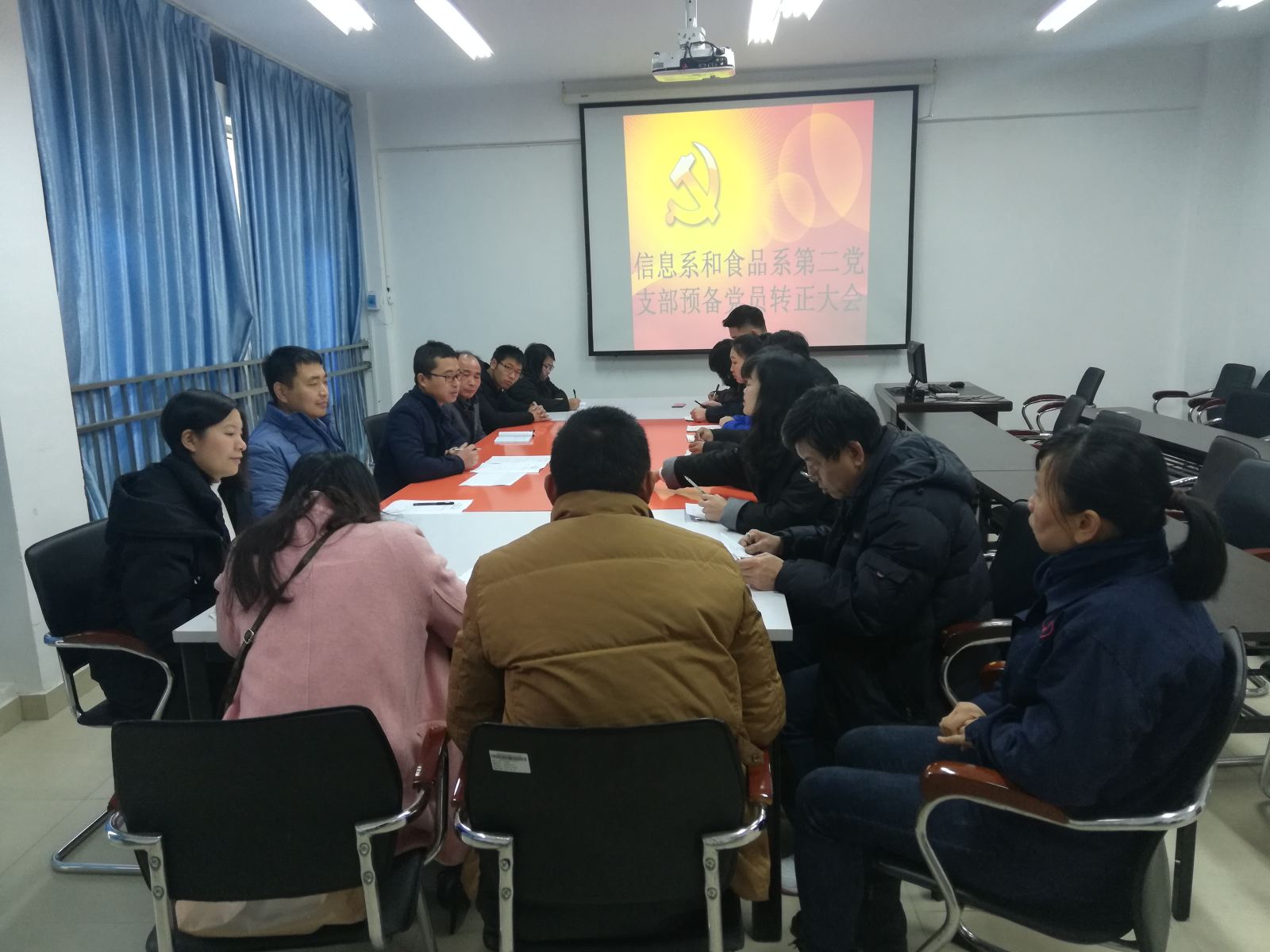2019年1月4日,信息系和食品系第二党支部在行政楼407室召开预备党员转正大会🚣🏼♂️。支委会首先向大会报告对陈浩东等同志的考察报告。陈浩东等5位预备党员宣读了转正申请👩🏼🍳,对预备期内的工作、生活、思想👩🏽🚀、学习等情况进行了总结,并正确的认识了自己的缺点与不足。培养考察人介绍了陈浩东等同志在预备期的表现👩🏿🎤。党内同志认真倾听🐂,并给予诚恳建议。此后正式党员进行无记名投票,会议现场点票,大会全票通过陈浩东等5名预备党员转为中共正式党员的申请。