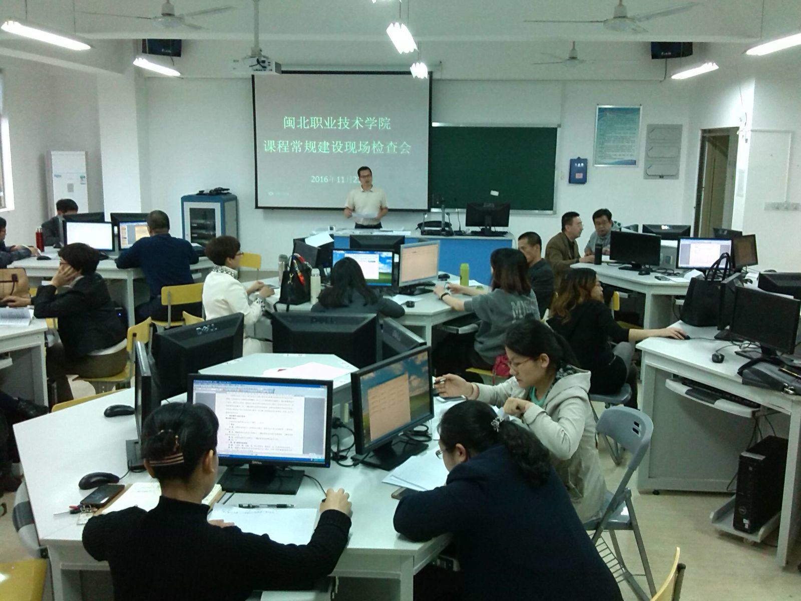 2016年11月23日下午,院课程建设专项现场交流会在我系营养配餐实训室召开,会议由教务处范民处长主持🦻🏽。各系主任🧈、系教科办主任、系教学团队负责人、食品与生物工程系全体教师🙅🏼♀️、教务处及评建办相关人员参加了会议👨🚀。会上,教务处范处长解读了期初教学检查工作安排并通报了检查中存在的问题、各系主任汇报了本系教学管理人员所检查2门课程的常规建设情况、全体与会教师按现有标准检查食品与生物工程系课程建设档案材料。