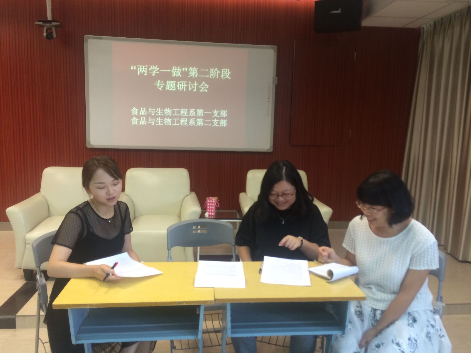 2016年9月19日下午,食品与生物工程系第二党支部全体党员在实训楼一体化教室召开了“两学一做”学习教育第二专题研讨会。本次学习研讨的主题是:“坚守纪律底线、培养高尚情操”。会前,全体党员认真研读《中国共产党章程》、《中国共产党廉洁自律准则》🛗、《中国共产党纪律处分条例》、《习近平总书记系列重要讲话读本(2016年版)》等书目👩⚕️,并做好学习笔记。会上🫴🏻,党支部书记黄妍及谢善慈同志作重点发言👈,其他党员互动交流,结合各自工作讨论了作为高职教师如何做到坚守纪律底线,培养高尚情操。