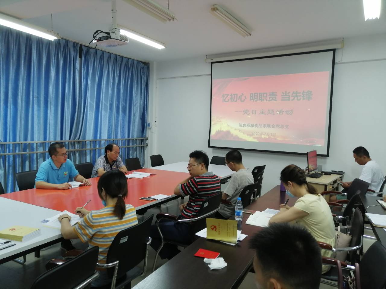 在举国上下庆祝中国共产党成立99周年之际👮🏿♂️,7月1日下午🎢,信息系和食品系联合党总支开展了“忆初心 明职责 当先锋”党日主题活动🧄,两系党员干部🕡、部分入党积极分子参加了活动。