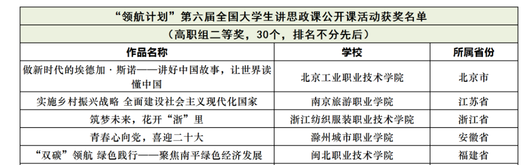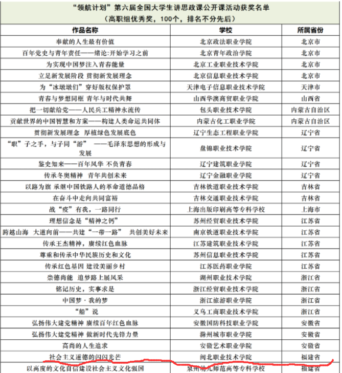 思政部范芳芳老师指导的《“双碳”领航,绿色践行——聚集南平绿色经济发展》作品,在2022年教育部开展习近平新时代中国特色社会主义思想大学习领航计划主题教育活动——第六届全国大学生讲思政课公开课活动获奖中🙆🏽,荣获全国高职组二等奖🕠,林文凤老师指导的《社会主义道德的闪闪光芒》作品荣获全国高职组优秀奖。实现我院思政质量工程首次国奖的新突破🧑🏻⚖️🐲!!!