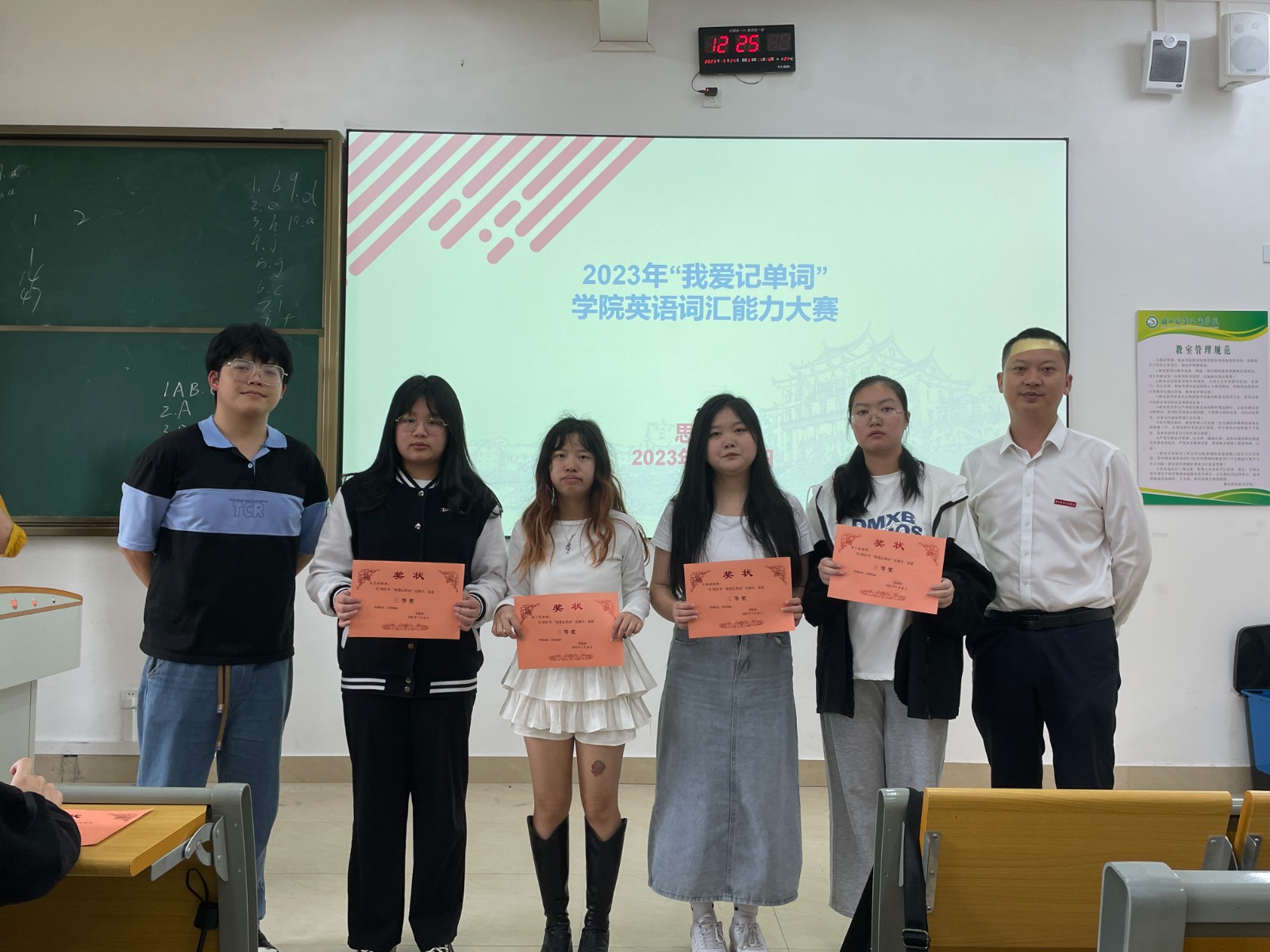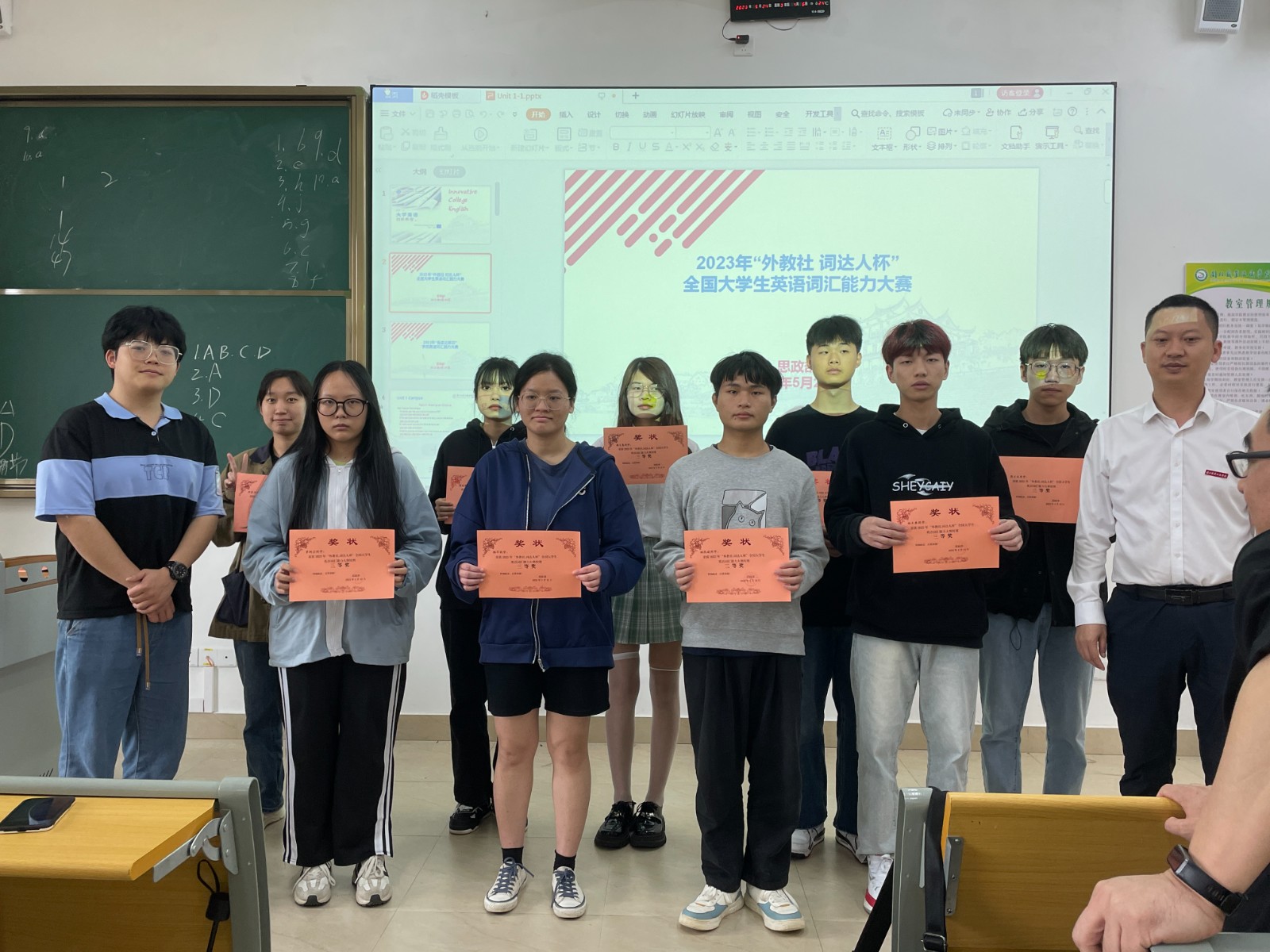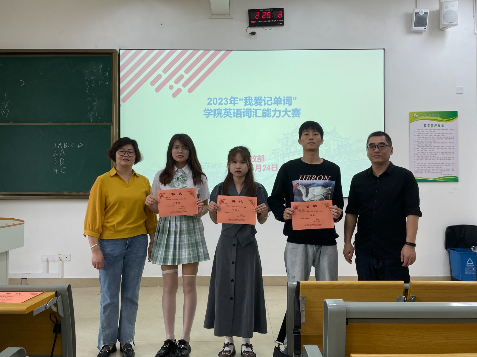 会上,邱海松部长👩🏻‍🍳、教科办主任郑桂芳及方凯教师分别发言,勉励同学们再接再厉,继续努力学习,力争获得佳绩。随后,英语教研室主任方凯老师宣读了2023年“外教社.词达人杯”全国大学生英语词汇能力大赛省赛、校赛以及今年英语社团举办的“我爱记单词”校赛获奖名单,最后全体与会教师分别给获奖的同学颁奖合影留念。